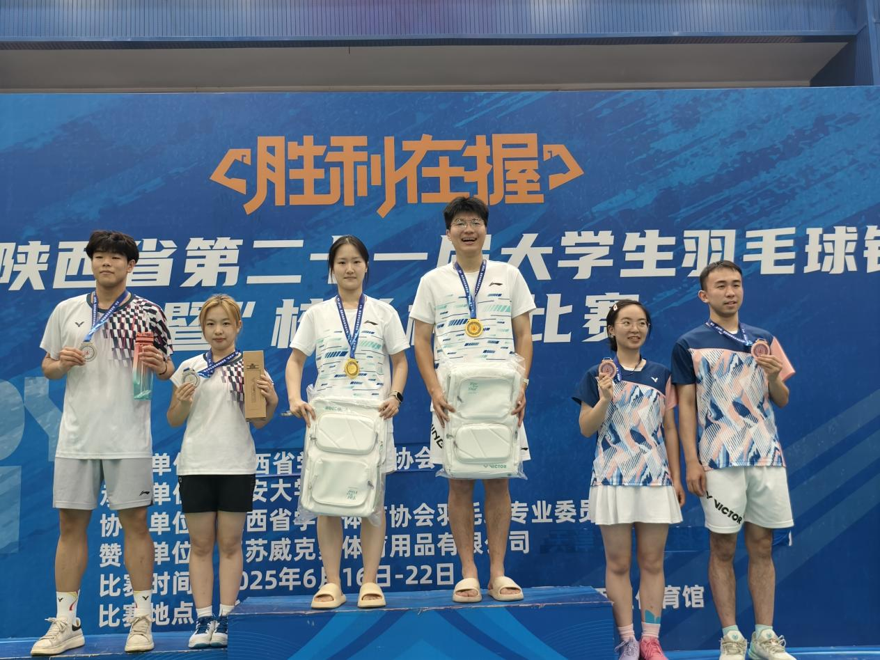 6月16—22日,陕西省第21届大学生羽毛球锦标赛暨“校长杯”比赛在长安大学火热开赛。本次赛事吸引了来自全省82支高校代表队1800余名运动员参加。经过几日精彩对决,乐鱼网页版页面登录羽毛球队混合双打荣获冠军,女子团体获得优胜奖,取得了突破性的成绩。在“校长杯”双打比赛中,校党委副书记张清搭档体育教研部教师王永胜,一路过关斩将获得该项目冠军。