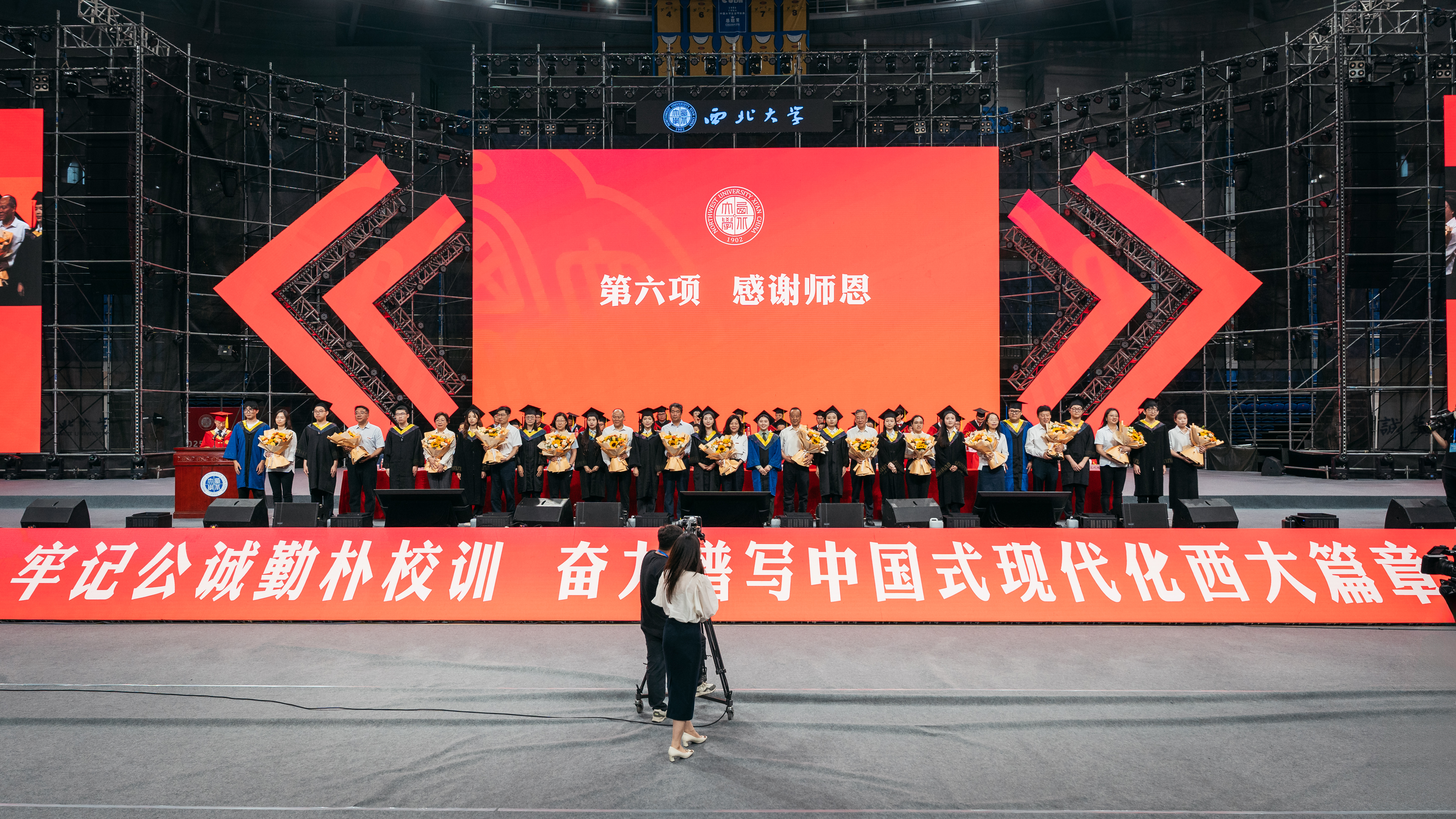 校友代表何宏以“热爱、责任、传承”为题分享了自己从事文博行业的轨迹,她寄语毕业生“愿未来的你们在热爱中谋生,在坚韧中前行。用平凡铸就非凡,以微光点亮世界。常怀感恩之心,常行有为之举!做西大精神的继承者,未来的开拓者。”
