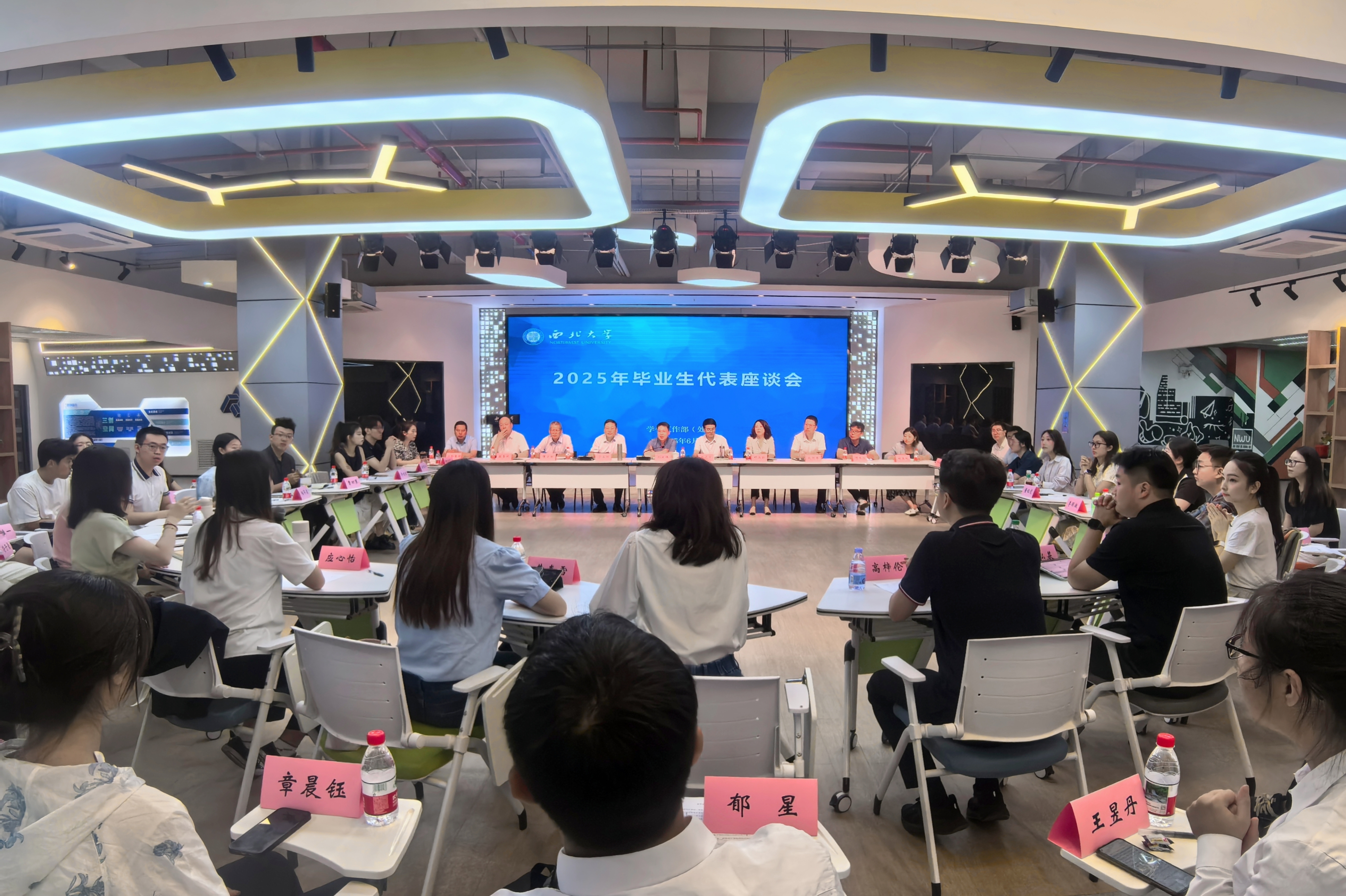 6月19日上午,乐鱼网页版页面登录2025年毕业生代表座谈会在长安校区召开。校长孙庆伟,校党委常委、副校长张远军与毕业生代表共聚一堂、共叙成长、共话未来。会议由学工部负责人主持。