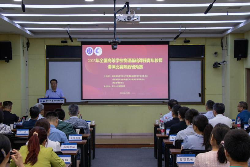6月7日,由教育部高等学校大学物理基础课程教学指导委员会、教育部高等学校物理学类专业教学指导委员会和陕西省物理学会主办,乐鱼网页版页面登录物理学院承办的2025年全国高等学校物理基础课程青年教师讲课比赛陕西省预赛在乐鱼网页版页面登录长安校区举办。本次比赛吸引了来自全省十九所高校的19位优秀青年教师同台竞技。乐鱼网页版页面登录党委常委、副校长李振海,陕西省物理学会理事长白晋涛,大学物理课程教指委西北地区工作委员会常务副主任、陕西省物理学会秘书长、西安交通大学物理学院院长高宏,乐鱼网页版页面登录教务处相关负责人出席开幕式,开幕式由乐鱼网页版页面登录物理学院负责人主持。
