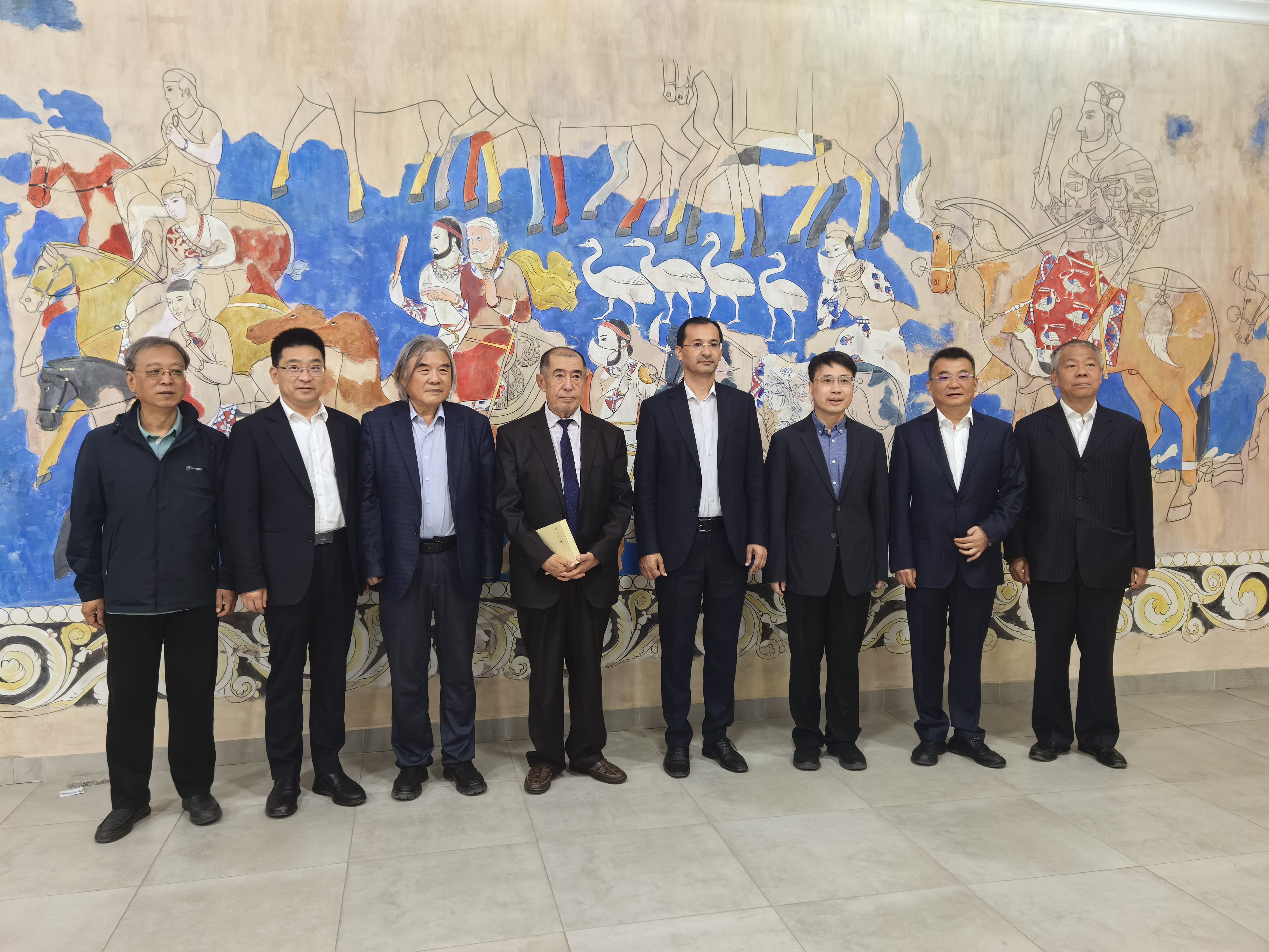 6月3日,由省内外高校组成的访问团一行15人访问撒马尔罕考古研究所。撒马尔罕考古研究所所长赛义多夫·穆明汗与孙庆伟分别向访问团介绍了双方在考古领域的合作背景与取得成效,并带领访问团一行调研了撒马尔罕考古所陈列室文物、大使厅壁画、文物保护修复实验室与阿夫拉西亚卜遗址。随后,乐鱼网页版页面登录与撒马尔罕考古研究所召开座谈会。会上孙庆伟表示,西安与撒马尔罕是友好城市。长期以来,乐鱼网页版页面登录与撒马尔罕考古研究所持续开展联合考古,取得一系列重要成果,为推动友城间的交流与合作作出了积极贡献。他希望,双方会同其他合作单位,进一步加强在苏尔汉河流域和费尔干纳盆地的联合考古、调查、发掘和研究,共同建设中国-中亚人类与环境“一带一路”联合实验室(撒马尔罕),携手打造高水平引领性合作项目,助力双方合作再上新台阶。赛义多夫·穆明汗表示,双方在考古、文物保护与文化遗产的价值阐释、人才培养等方面已取得良好成果,希望未来继续加深合作,共同建设阿夫拉西亚卜遗址博物馆,联合制定大遗址保护、开发与利用方案,并合作开展青年考古专家培训。