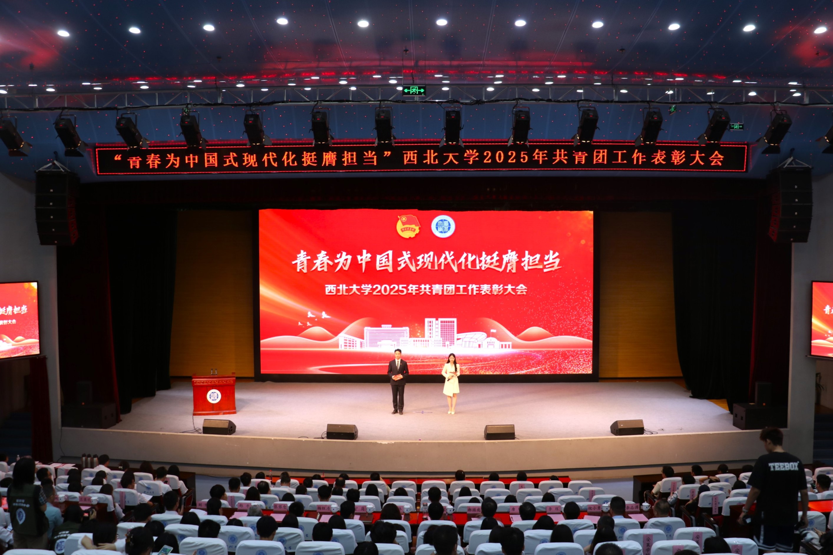 5月22日下午,“青春为中国式现代化挺膺担当”乐鱼网页版页面登录2025年共青团工作表彰大会在长安校区举行。校党委常委、副校长张远军,历史学院教授兰梁斌、马克思主义学院副教授侯斌、学校相关单位负责人,各院系学生工作负责人、专职团干、乐鱼网页版页面登录青年先锋宣讲团成员代表、青年代表200余人参加了本次活动。本次会议由校团委学生兼职副书记、经济管理学院2023级研究生李雨豪,“优秀共青团员”代表、新闻传播学院2023级本科生朱子妗主持。