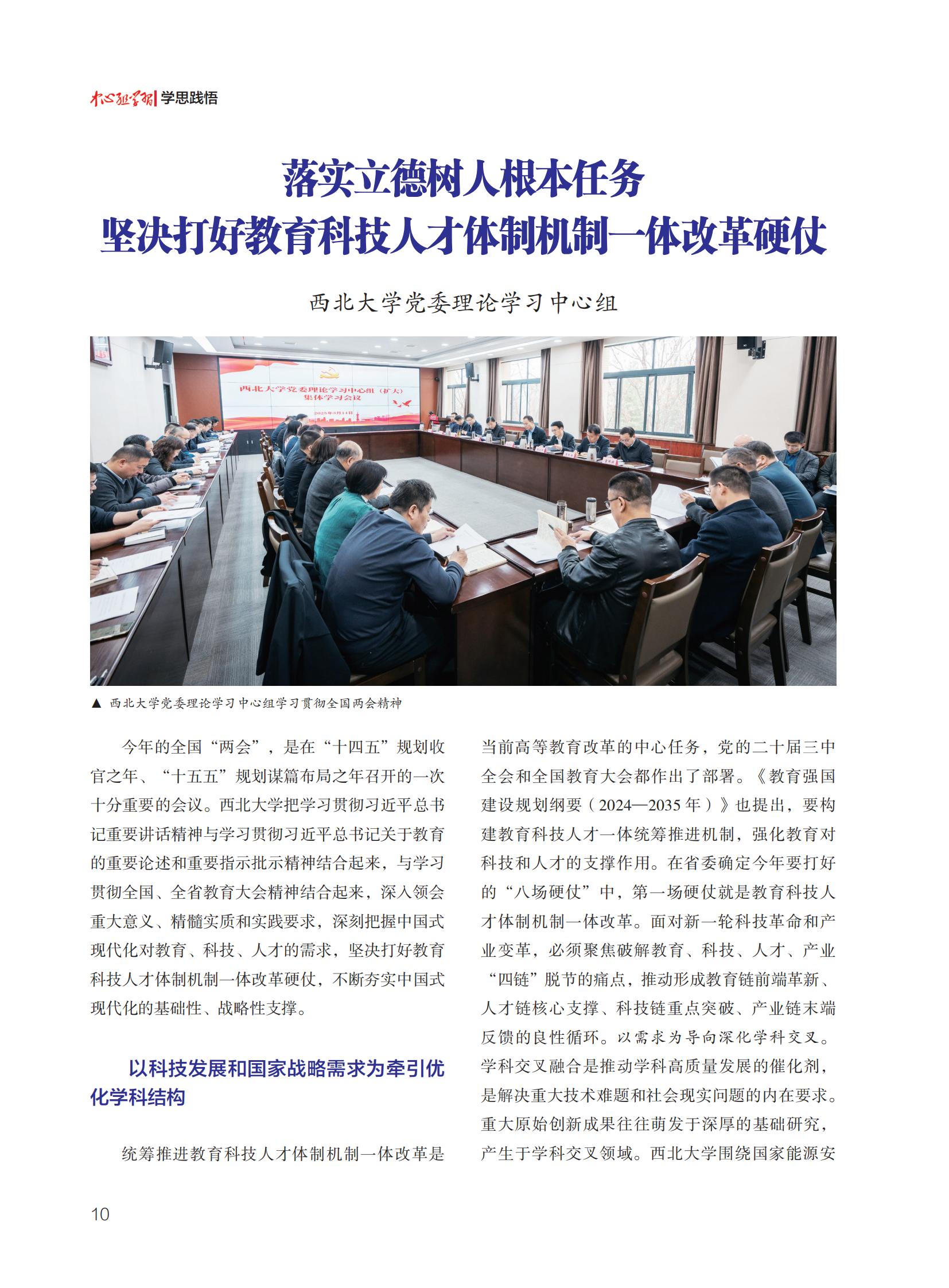 文章从“以科技发展和国家战略需求为牵引优化学科结构”“大力促进科技成果向新质生产力转化”“加快提升拔尖创新人才自主培养能力”三个方面,阐述了乐鱼网页版页面登录认真学习贯彻习近平总书记重要讲话精神,扎实落实中心组学习制度,推进教育科技人才体制机制一体改革的思考、做法和成效。