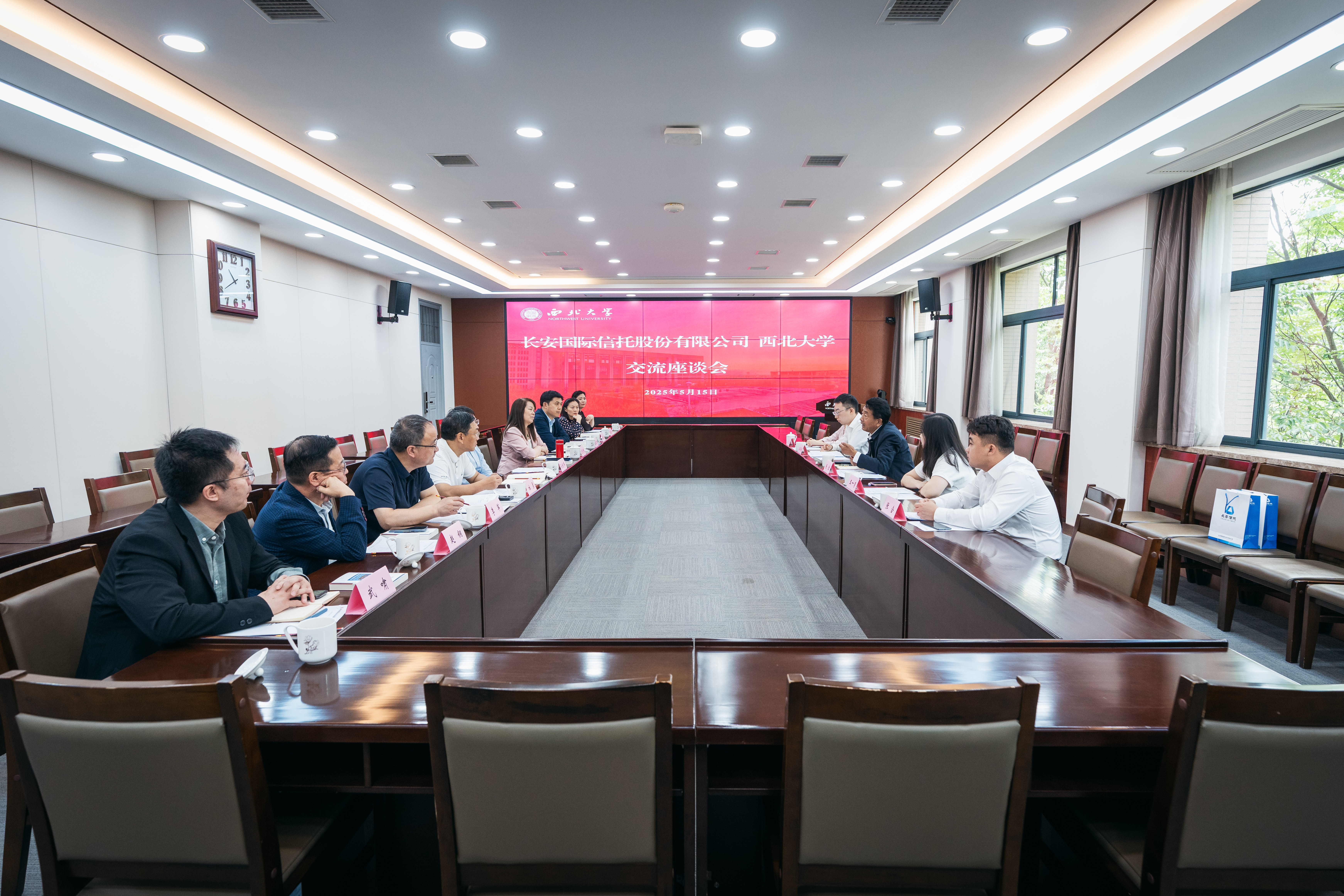 5月15日,长安国际信托股份有限公司副总裁张胜一行来校调研交流,校长孙庆伟,校党委常委、副校长范代娣出席活动,双方相关单位负责人参加座谈。