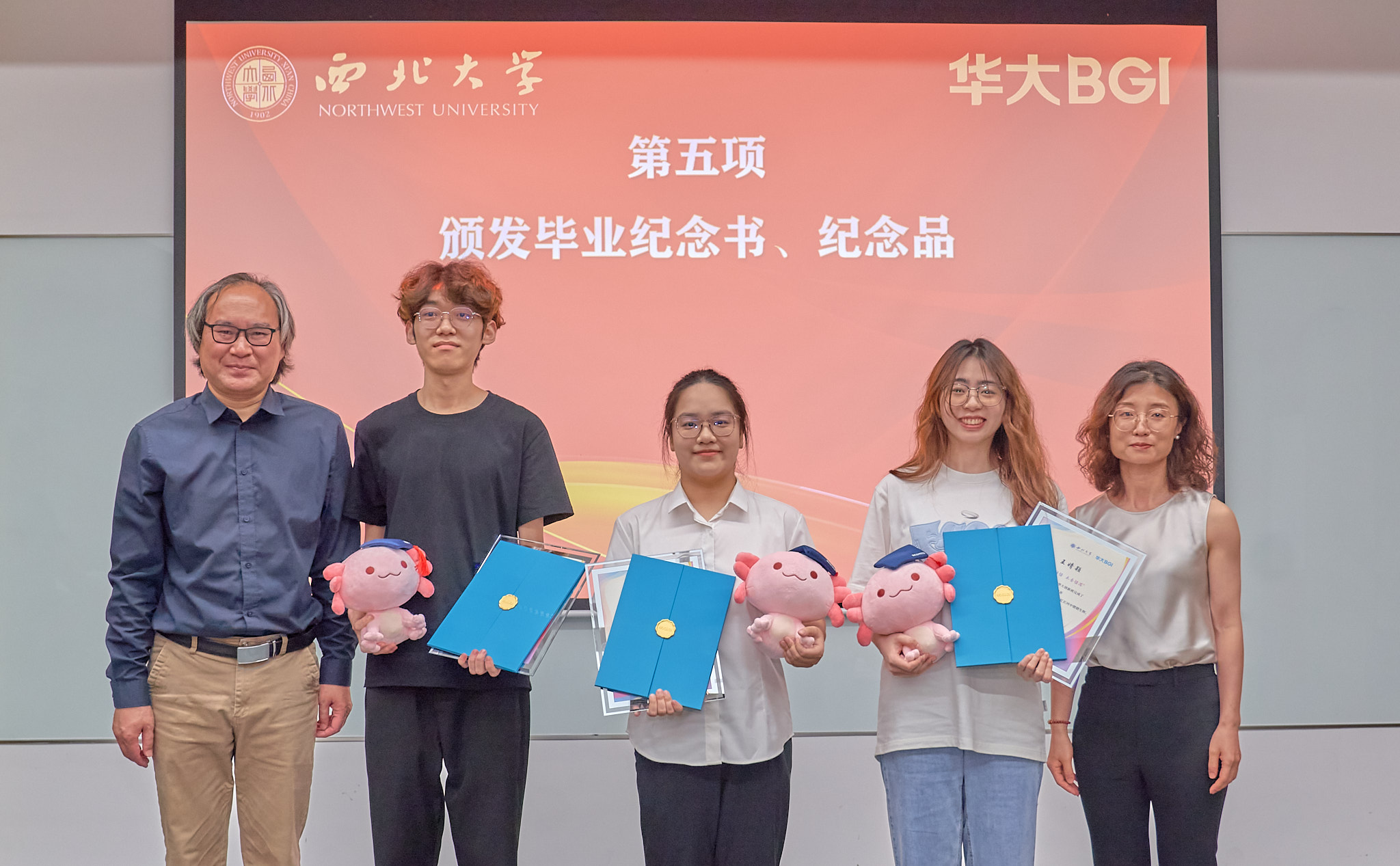 典礼上,学生代表分享了科研学习和生活经历。与会领导为第五届华大创新班思政、领航、学长班主任、创新创业导师颁发聘书,向每位毕业生颁发毕业证书、发放纪念品,为华大创新班党支部举行了揭牌和授旗仪式,互赠纪念品。