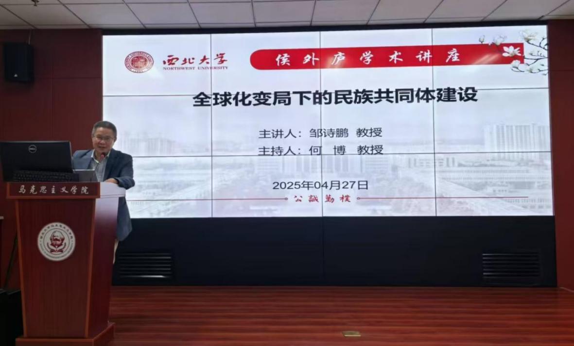 4月27日下午,国家级人才计划获得者、中国马克思主义哲学史学会副会长、复旦大学哲学学院邹诗鹏教授受邀做客乐鱼网页版页面登录“侯外庐学术讲座”第423讲,作了题为“全球化变局下的民族共同体建设”的学术讲座。讲座由马克思主义学院何博教授主持,学院教师和博、硕士研究生共80余人参加。