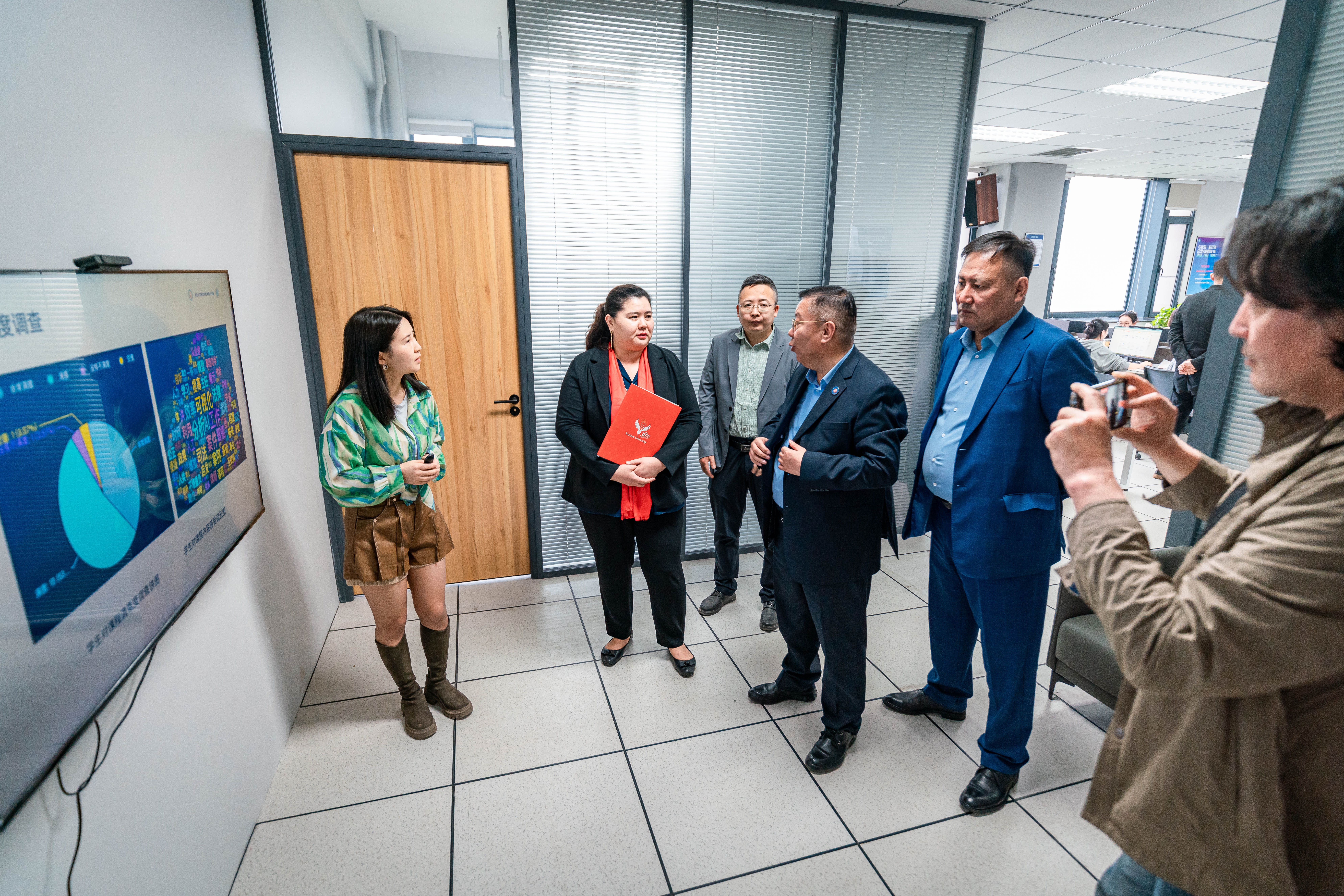 贾孜依拉对乐鱼网页版页面登录的接待表示感谢,详细介绍了哈萨克斯坦库纳耶夫大学的办学历程、专业设置、学科特色以及与波兰、土耳其等海外院校的合作情况,并表达了与乐鱼网页版页面登录在学生培养、联合科研等领域开展合作的意愿。