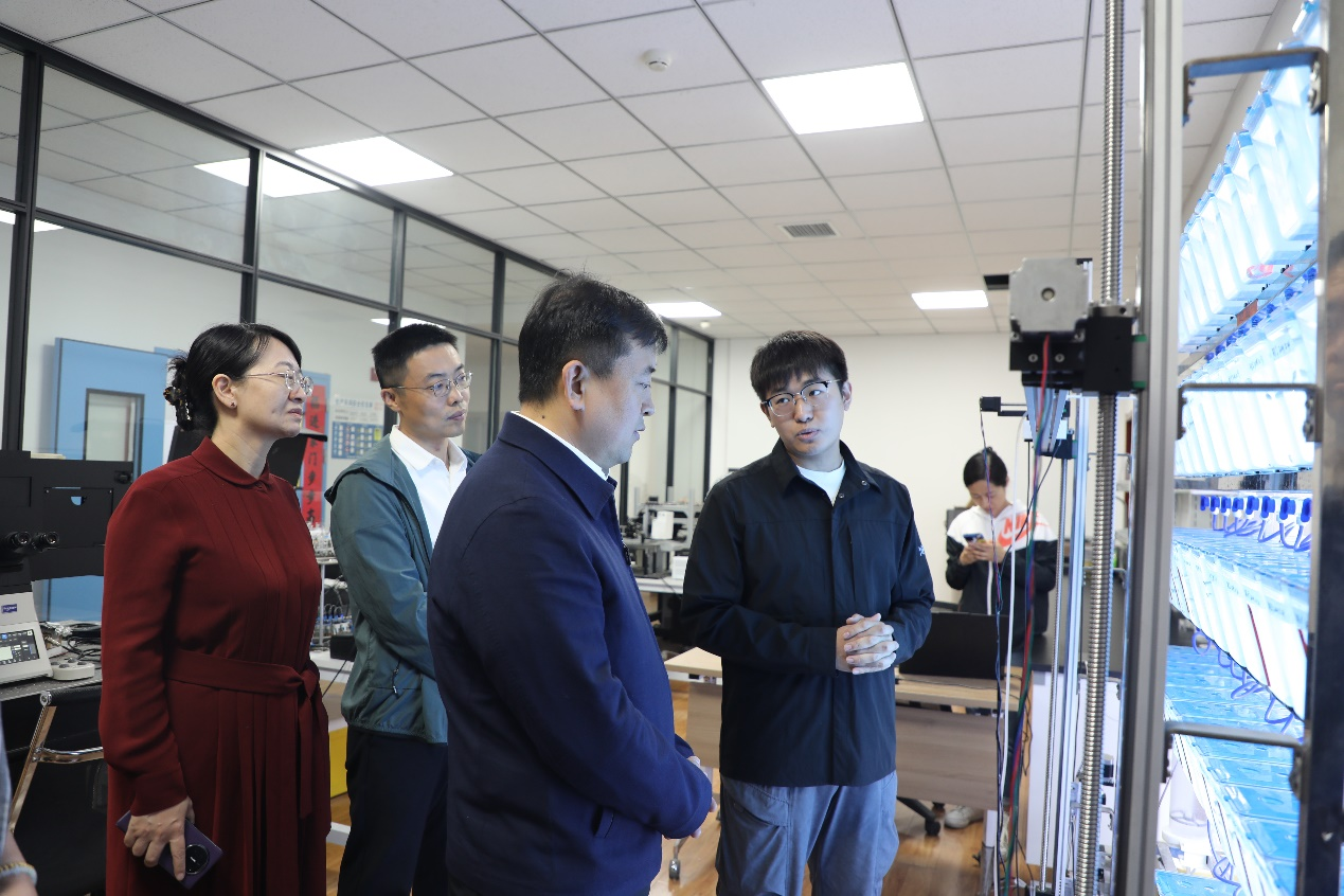 在长安产业加速器,陈默一行调研了乐鱼网页版页面登录教师团队入孵的“贵金属功能浆料产业化关键技术”“新一代磁共振影像对比剂——玵立显”“基于数字微流体控制技术的自动化生物医学实验平台”项目,并现场与项目负责人交流,重点了解入园项目的孵化进展、科研方向、产品研发能力以及产业化前景等。在化工学院,陈默一行实地考察了学校生物医药研究院、功能涂层实验室、煤焦油实验室建设情况,听取了各平台的建设进展汇报,了解科技创新工作现实需求。