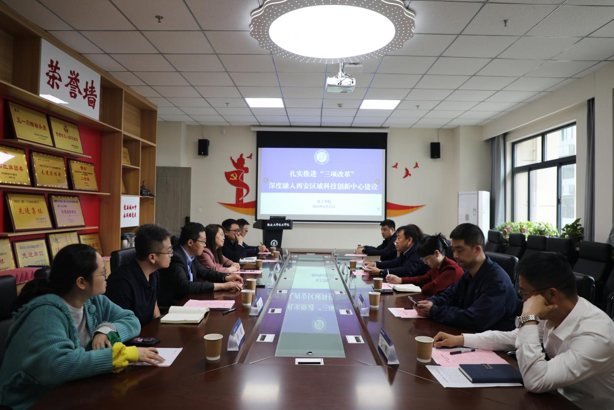 4月21日,西安市科技局党组书记、局长陈默来校调研科技成果转化及大学科技园建设工作,市科技局党组成员、副局长江霞,市科技局成果处处长解忠,西安郭杜教育科技产业开发区管委会主任赵鹏,以及相关人员随行调研。乐鱼网页版页面登录党委常委、副校长范代娣,科技处、化工学院相关负责人陪同调研。