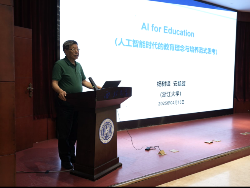 报告中,杨树锋院士以信息通信技术飞速发展为切入点,引出人工智能对教育领域的影响与变革。他系统阐释了AI为教育中知识获取方式、教学结构、教学范式以及教育管理方式带来的变化,梳理了人工智能的简要发展过程及其在教育领域的广泛应用。针对AI带来的挑战,杨树锋院士着重提出了十个关键问题,包括AI+作业对思维训练的弱化、算法推荐导致的认知窄化、教育同质化倾向与个性化发展空间的博弈等核心矛盾,并强调应在此基础上思考教育教学如何与AI相辅相成。报告最后,杨树锋院士指出,面对技术革命浪潮,教育工作者应以开放而审慎的态度,在技术工具理性与教育价值理性之间寻求平衡。