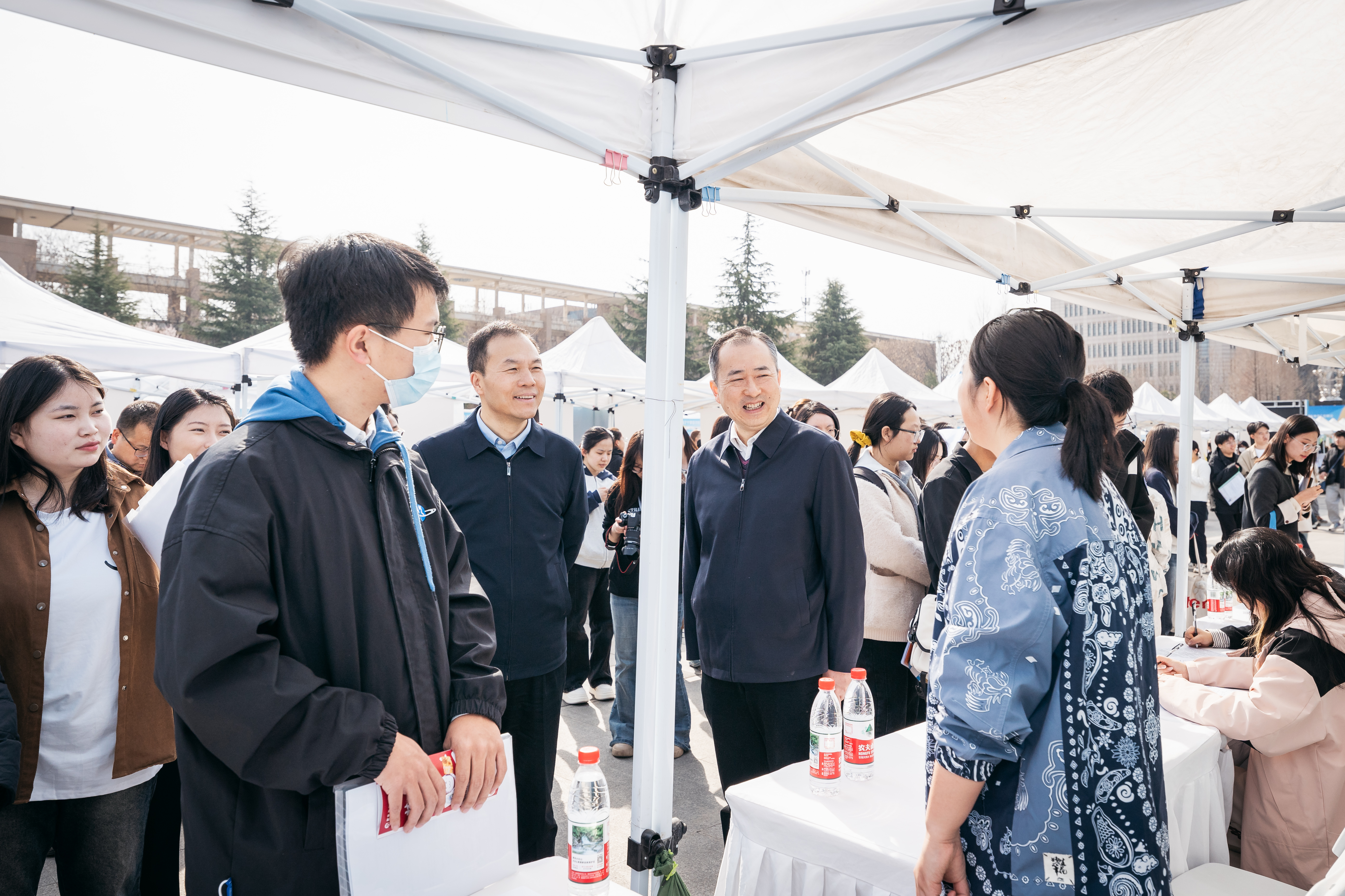 陕西省学生就业与留学服务中心主任相勇、乐鱼网页版页面登录党委副书记吕建荣走访了重点用人单位,并同用人单位和毕业生现场互动交流,详细了解单位招聘和毕业生就业情况。学校相关单位负责人和各院(系)学生工作负责人及全体毕业班辅导员参加活动。