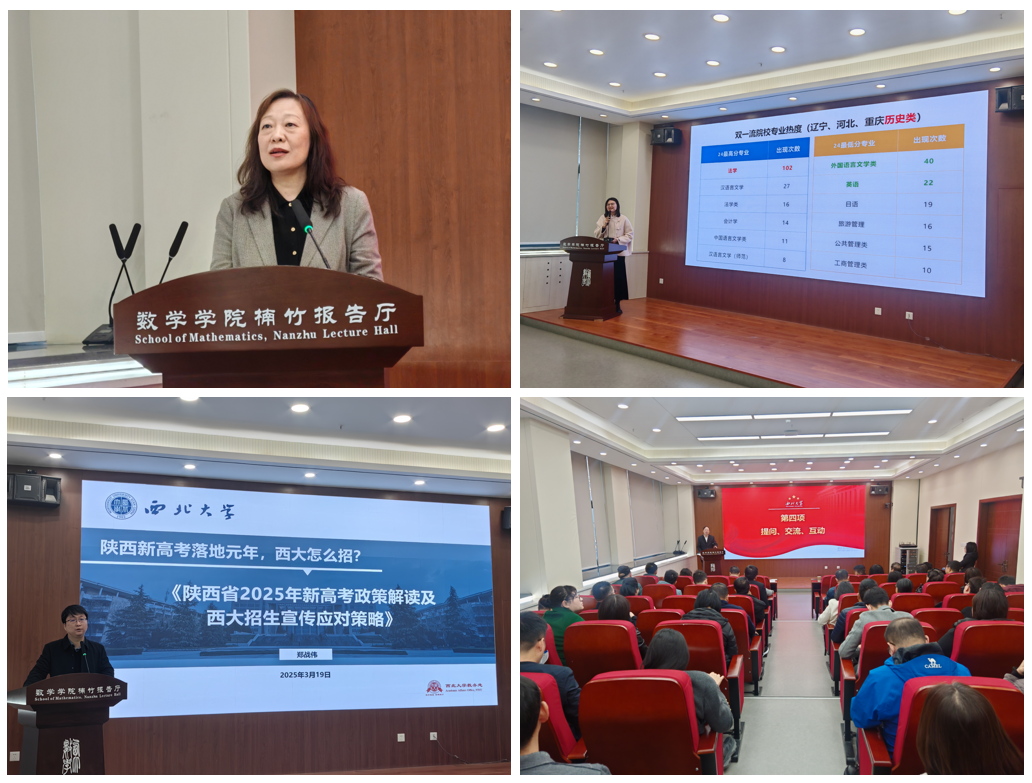 升学在线研究院首席专家李芳作了“新高考背景下的高招录取形势分析及招宣策略”的专题报告,通过详实的数据分析与典型案例,深入解读招生录取新趋势,并提出“专业改革+精准宣传”的应对策略,强调要招生宣传工作需要全员、全程、全方位。教务处招生工作负责人立足陕西新高考改革实际,系统阐释新高考背景下志愿填报、录取机制等关键环节改革要点。应对改革,学校积极构建“院系+招生组”协同机制,合理优化专业组设置、创建特色品牌班,明晰宣传策略,为各院系及招生组招宣工作推进提供系统化行动指南。