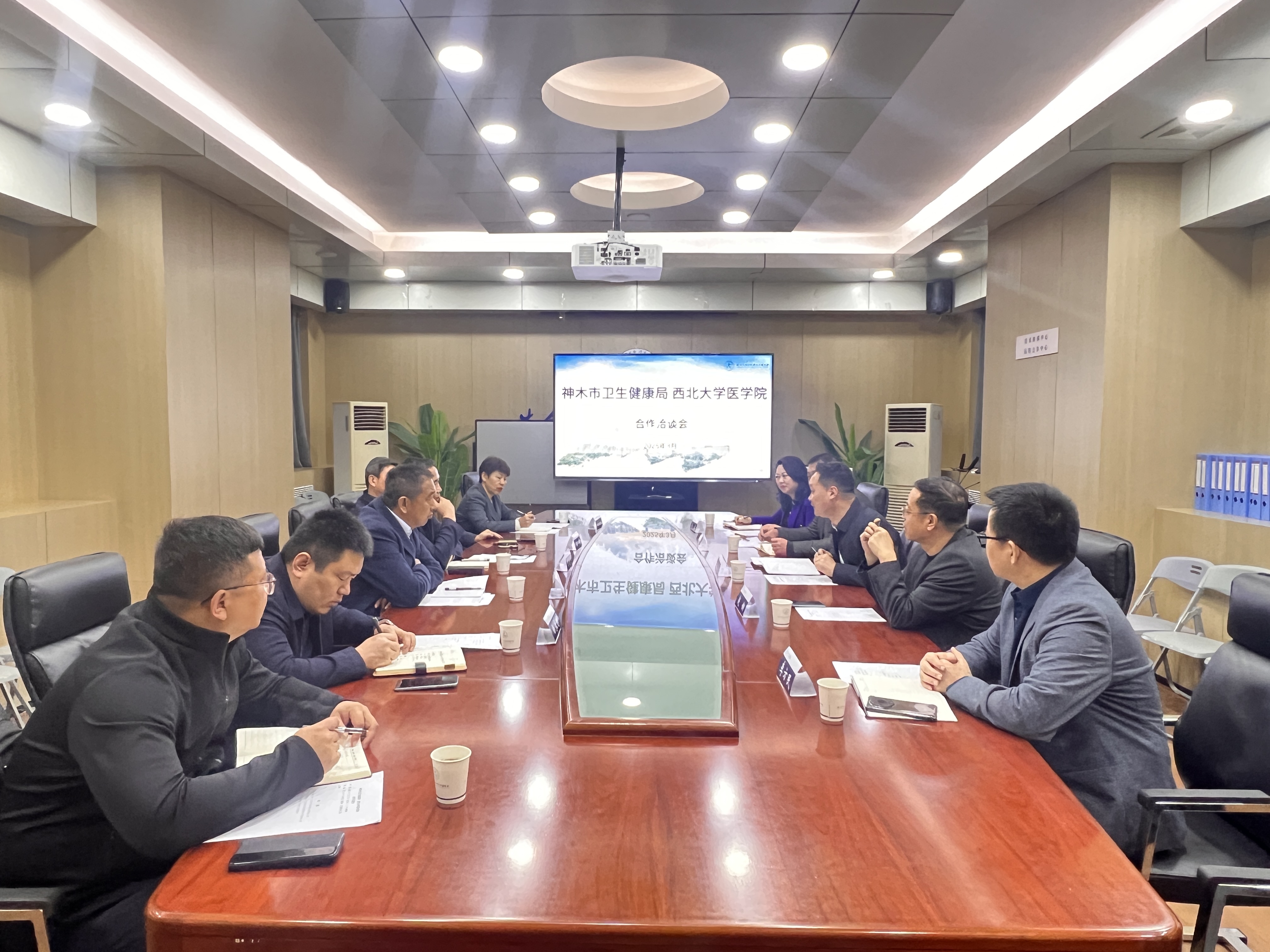 陈富林对神木市代表团的到来表示欢迎,并介绍了学校近年来在学科建设、人才培养、科学研究等方面取得的成绩。他指出,神木市作为全国百强县,在经济社会蓬勃发展同时,医疗卫生事业也取得长足进步,为双方合作提供了广阔空间。