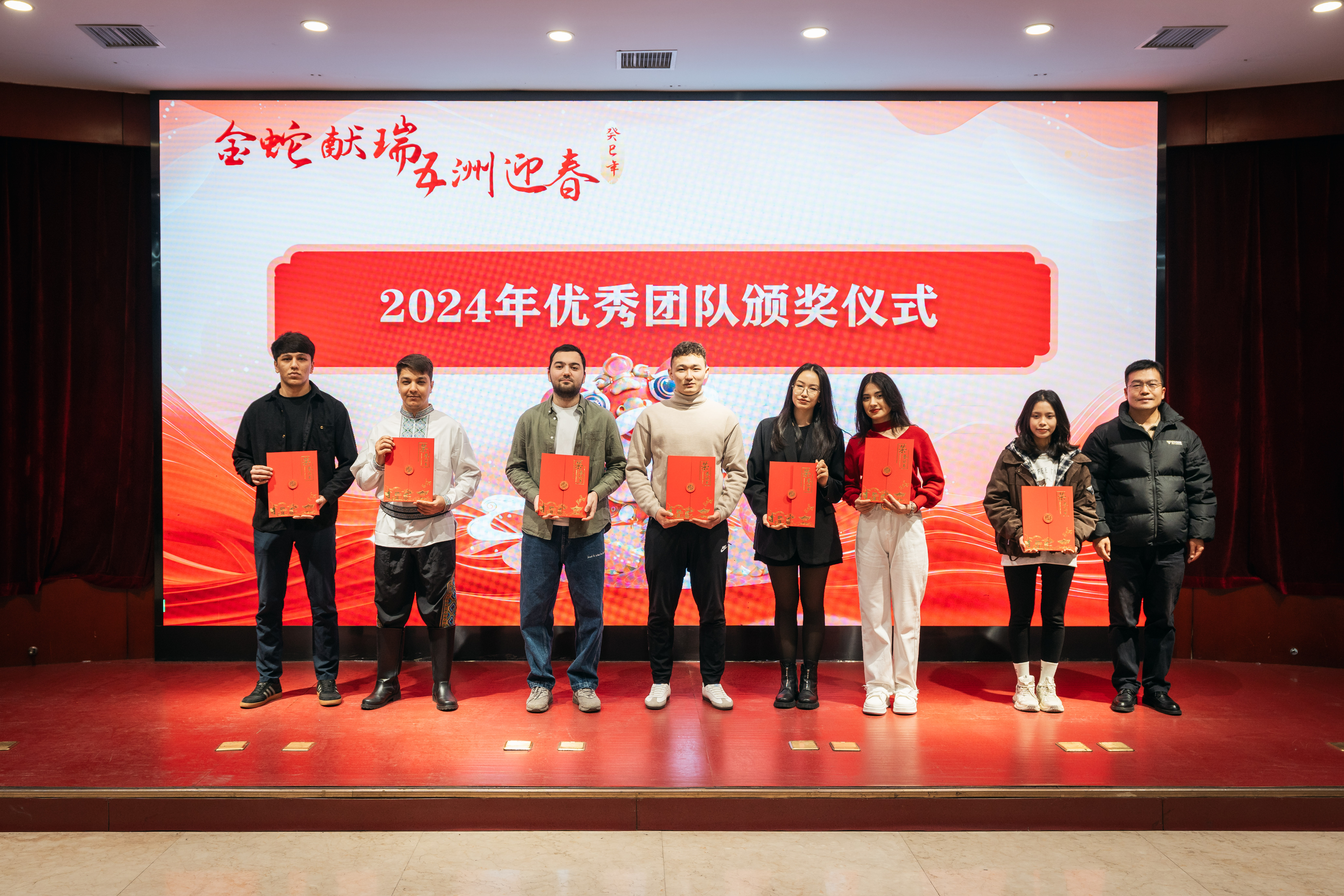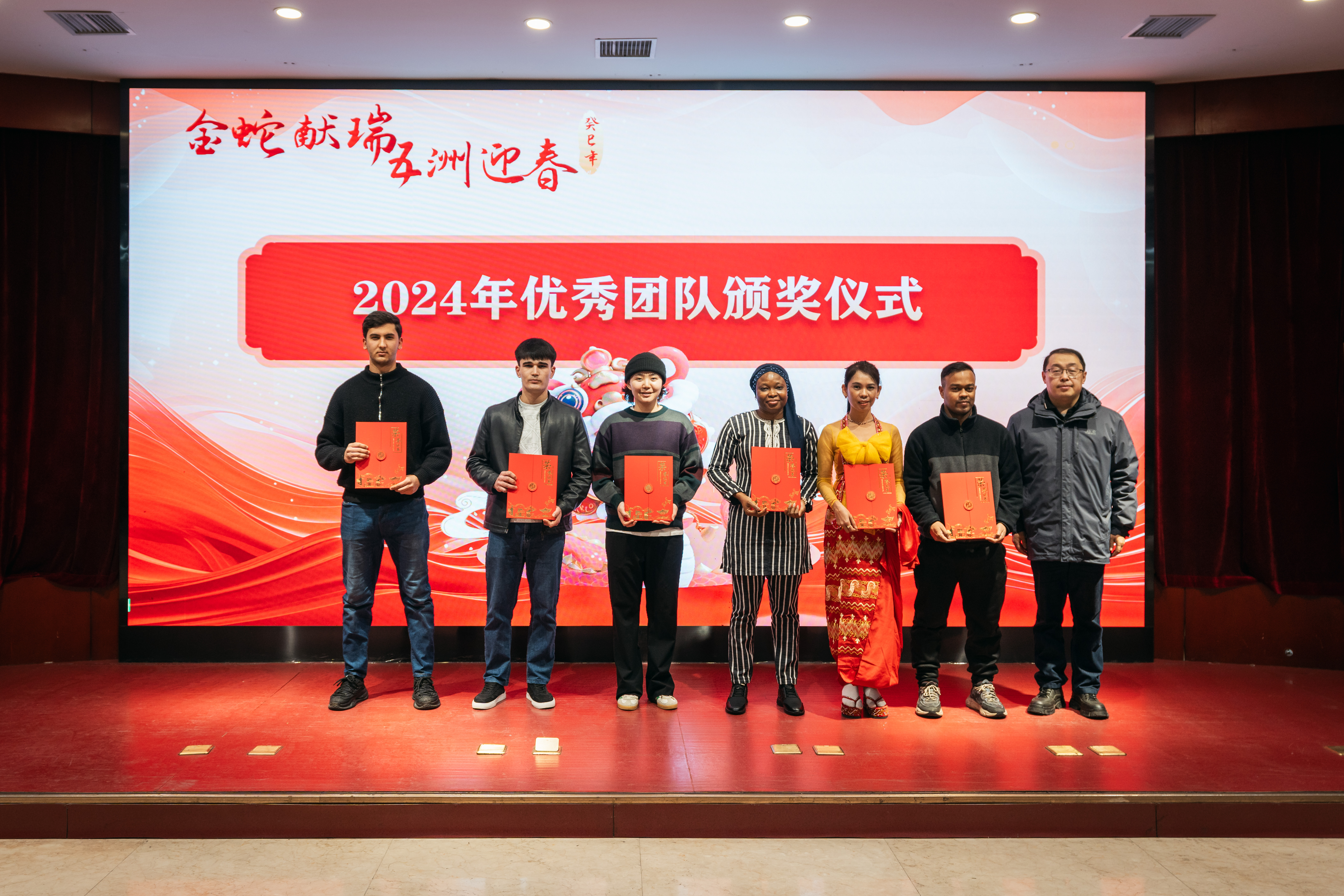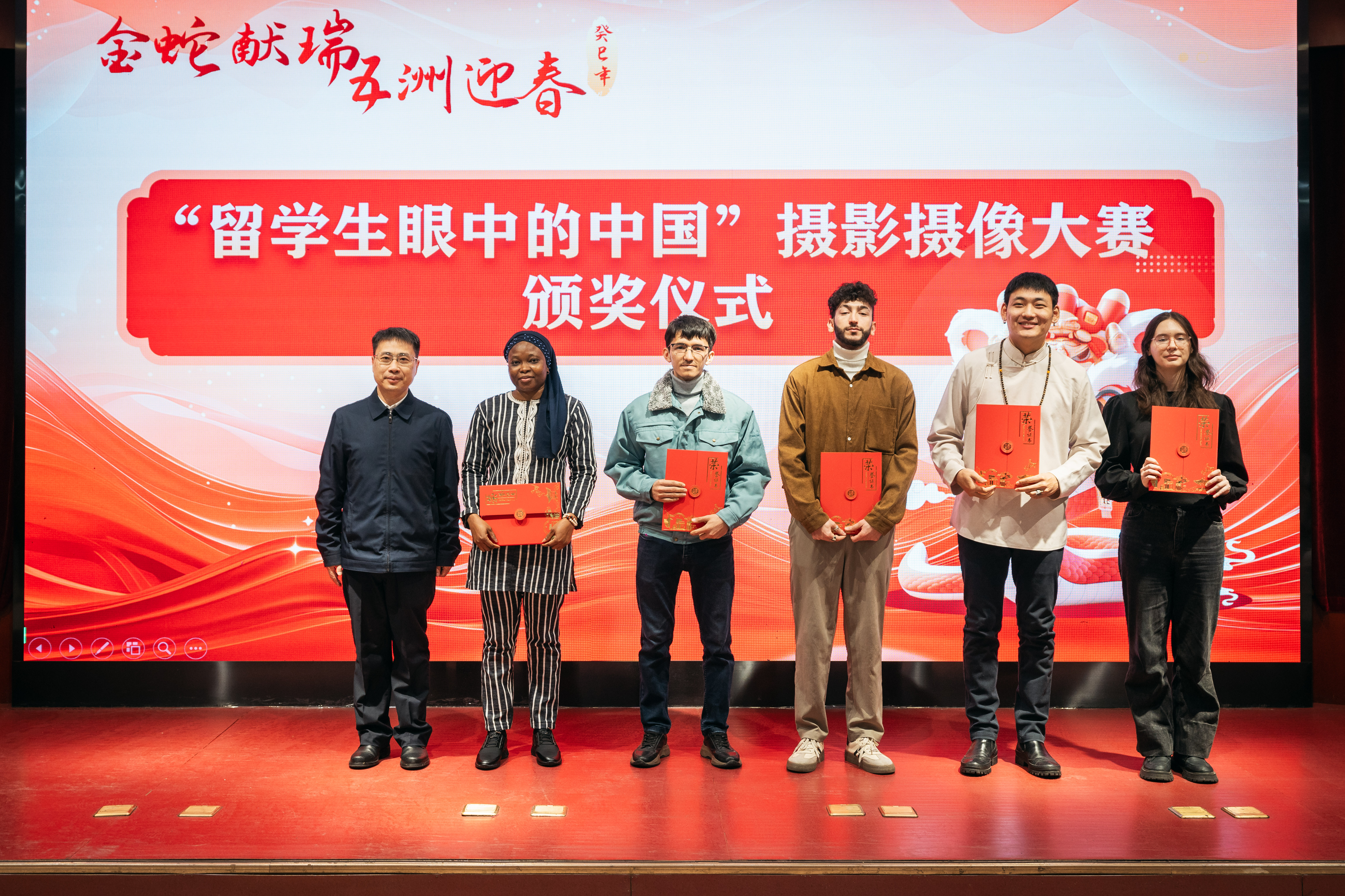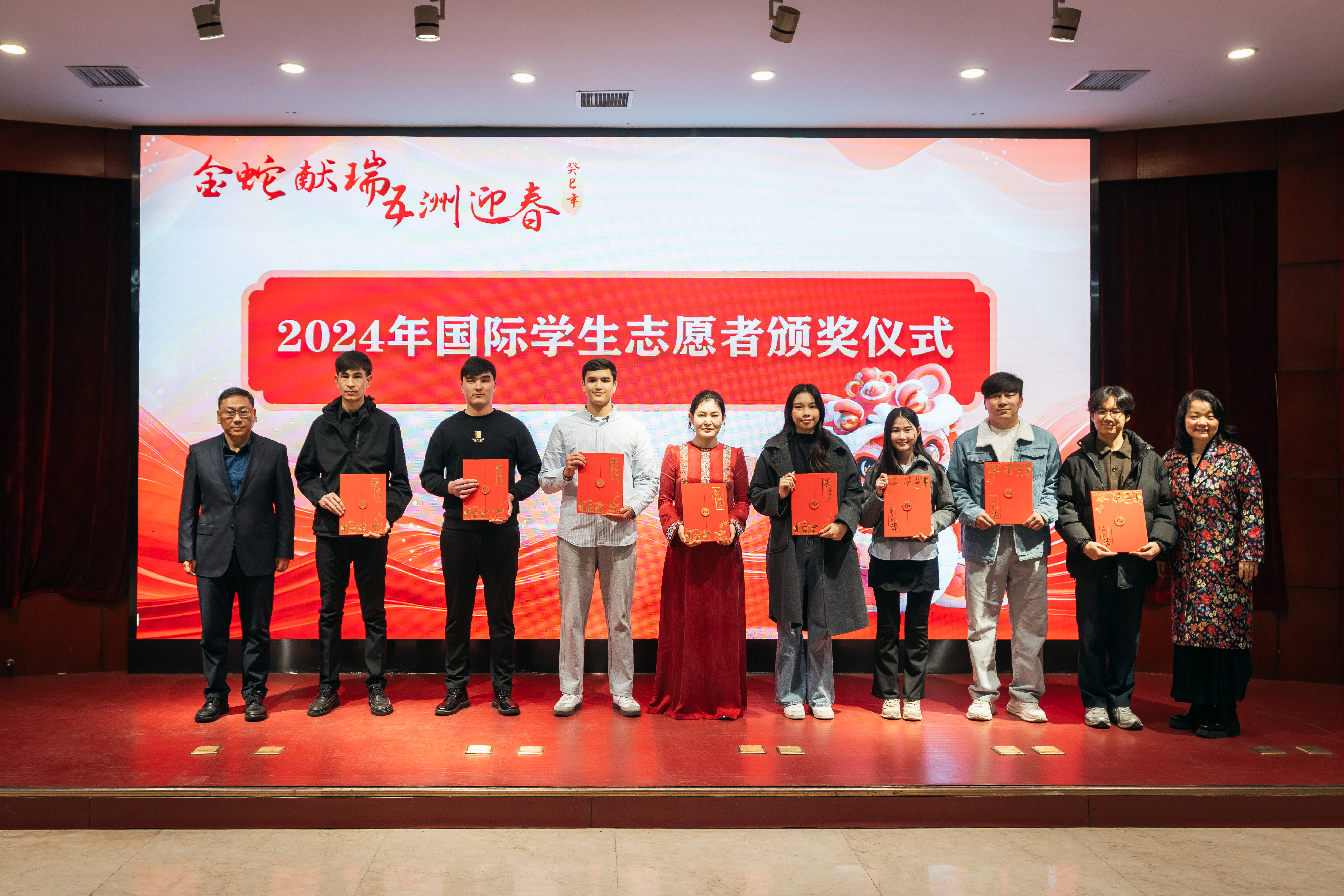 1月24日下午,“金蛇献瑞,五洲迎春” 2025蛇年外籍师生春节联欢活动暨“身边的榜样”表彰大会在太白校区举行。中外师生齐聚一堂,共同迎接新春佳节的到来。校长孙庆伟,相关职能处室及院系负责人,留校外籍师生以及国际教育学院全体教师参加了此次活动。