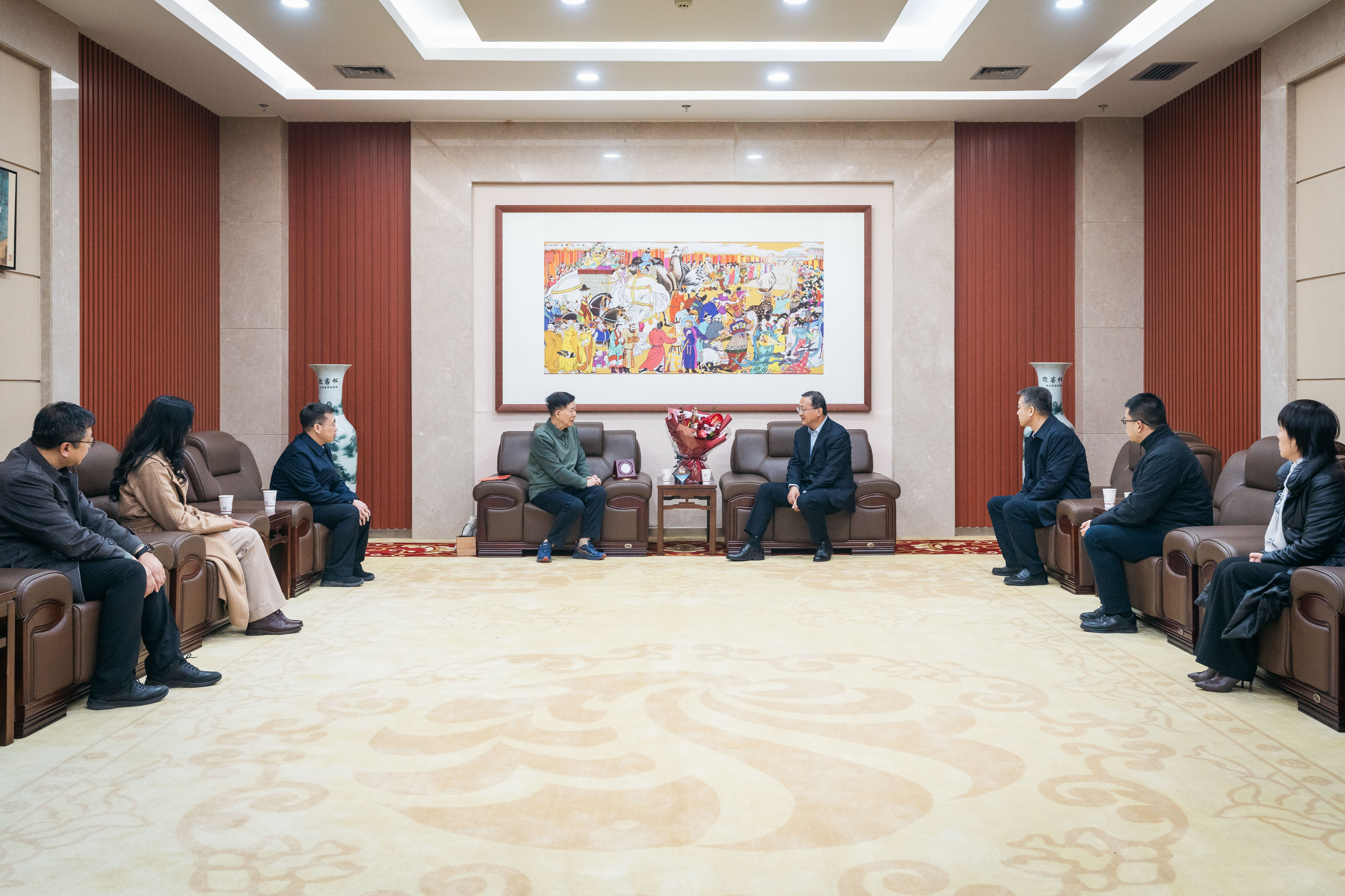 新春佳节到来之际,陕西省副省长、省政府党组成员窦敬丽,西安市人大常委会党组书记、主任韩松,西安市政协副主席王晓萍等省市领导,分别来校看望慰问中国科学院院士、地质学系张国伟教授、舒德干教授,向他们送上鲜花和慰问金,并致以新春佳节的诚挚祝福和亲切问候,衷心感谢他们为陕西省、西安市经济社会发展作出的重要贡献。校党委书记蒋林,校长孙庆伟,校党委副书记张清陪同看望,人才办、地质学系负责人参加慰问活动。