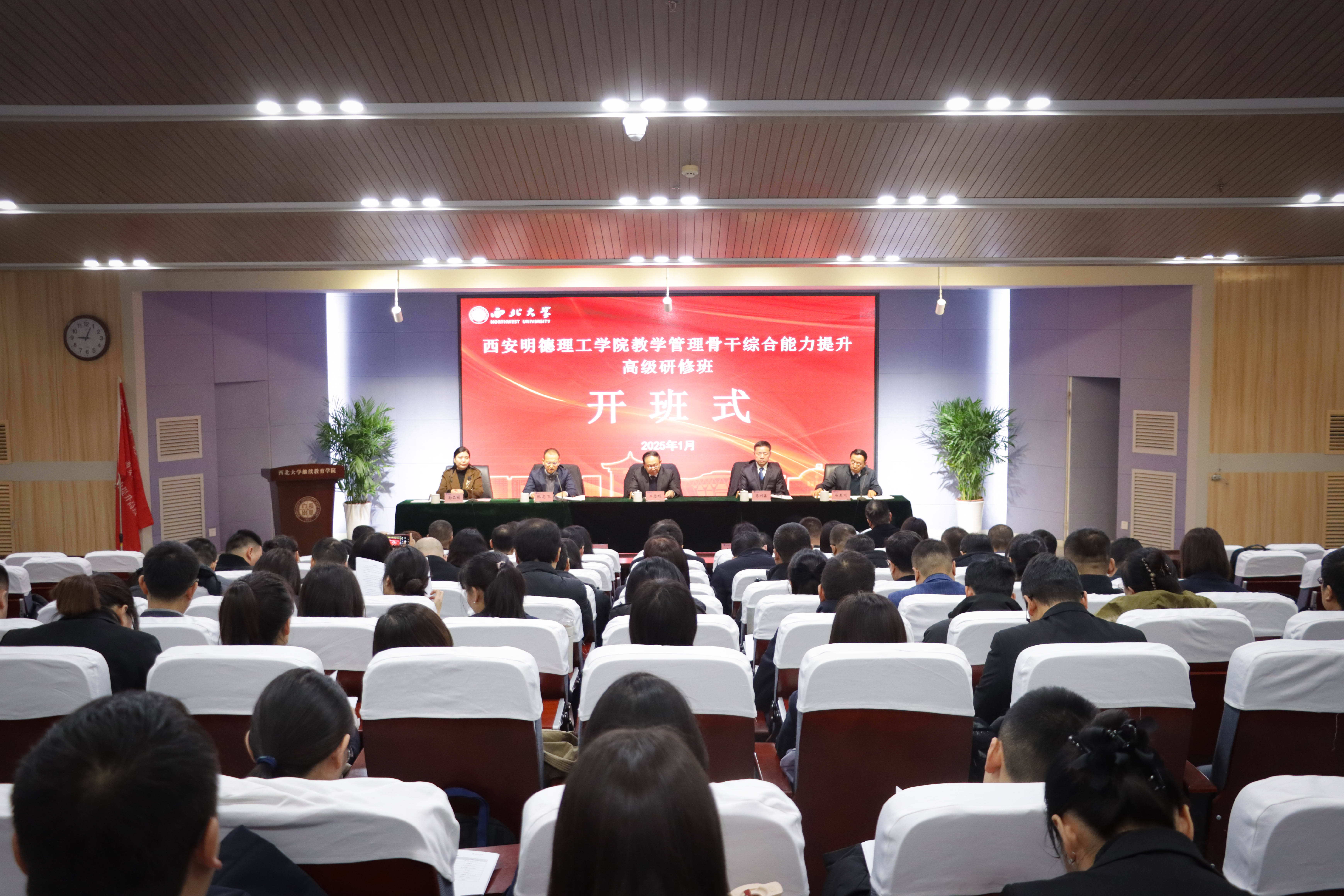 1月20日,西安明德理工学院教学管理骨干综合能力提升高级研修班在桃园校区开班。西安明德理工学院校长王志刚,党委书记马川鑫,党委副书记、副校长、纪委书记白秦川,乐鱼网页版页面登录党委常委、副校长张志飞出席开班式。来自西安明德理工学院校领导、中层与科级干部90人参加。