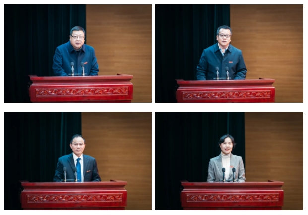 蒋林在总结讲话中肯定了学校一年来取得的成绩,对为学校建设发展辛勤工作的全体教职员工表示感谢。他指出,过去一年全校上下深融互促,厚植“进”的发展优势;真抓实干,积聚“新”的发展动能;善谋力行,夯实“超”的发展基础,在攻坚克难中交出了亮丽答卷。就做好2025年工作,他要求,一要看清方向,在把握大势中赢得工作主动。要从中央决策部署中抢抓机遇,从全省发展大局中洞察时势,从学校目标定位中深化改革。二要聚焦主线,在推进教育科技人才体制机制一体化改革中做示范。要紧扣立德树人根本点,增强“三位一体”育人协同力;抓好科技创新着力点,增强“三位一体”科技支撑力;把握人才队伍关键点,增强“三位一体”人才保障力。三要全校动员,全身心投入本科教育教学审核评估。要紧抓评估契机,构建高质量人才培养体系;聚焦评估重点,建设高水平质量保障体系;强化协同推进,全面落实审核评估核心任务。他最后强调,站在新的发展起点,全校上下要以推进教育科技人才体制机制一体化改革为主线,以本科教育教学审核评估为抓手,先人一步谋发展、快人一拍抢机遇、胜人一筹抓落实,全力推动各项事业追赶超越,以学校高质量发展的新成效,为奋力谱写中国式现代化建设的陕西新篇章作出新的更大贡献。