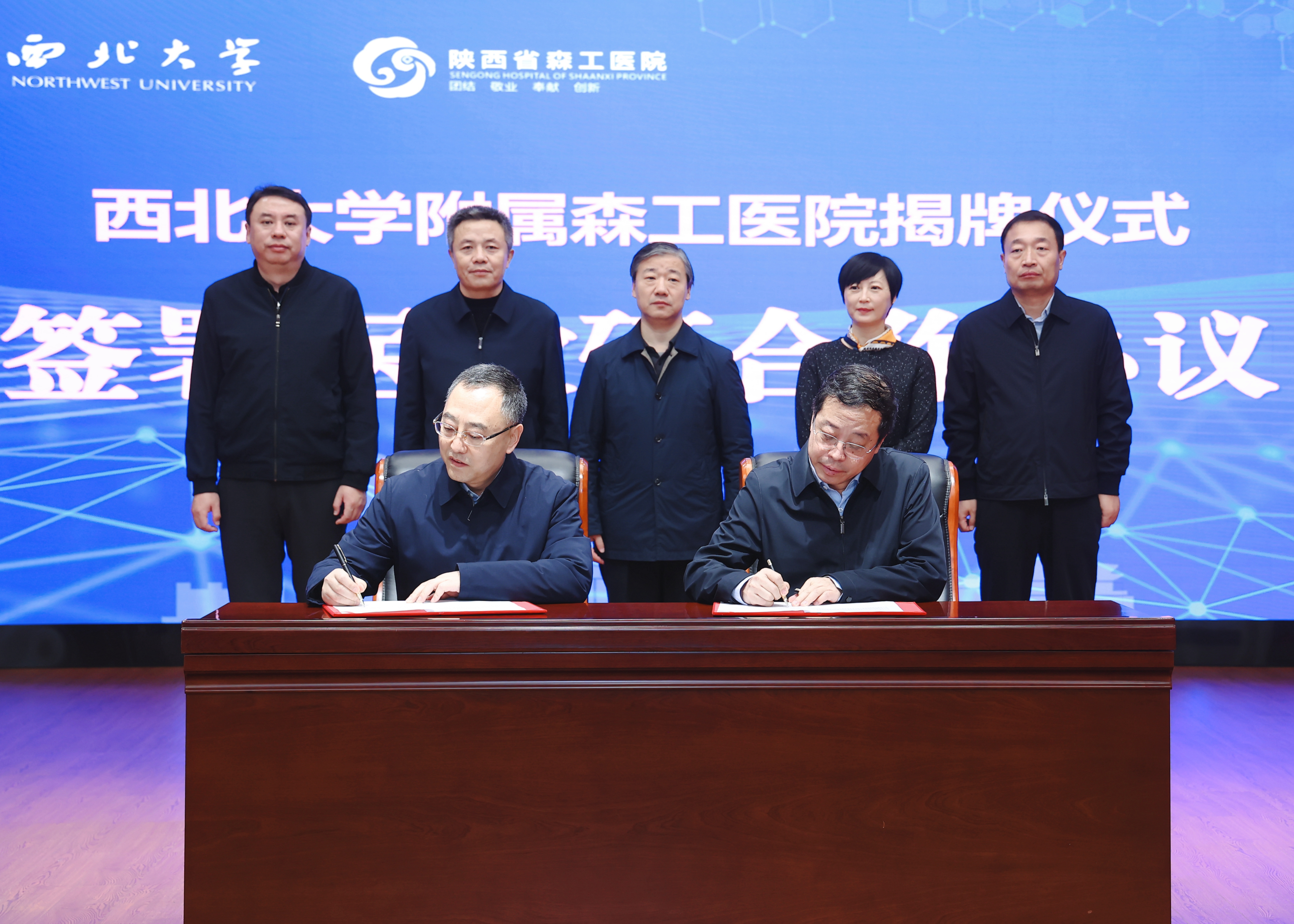 12月24日,乐鱼网页版页面登录-陕西省森工医院医教研合作签约暨乐鱼网页版页面登录附属森工医院揭牌仪式在陕西省森工医院举行。省卫健委党组成员、副主任薛寒,省林业局党组成员、省森林资源管理局党委书记、局长朱建军,鄠邑区委书记李化,市卫健委党委委员、副主任张波,乐鱼网页版页面登录党委书记蒋林出席活动,省卫健委、省森林资源管理局、鄠邑区、市卫健委的相关职能部门负责人,乐鱼网页版页面登录国内处、医学院、第一医院负责人,陕西省森工医院中层以上医务人员参加仪式。仪式由校党委常委、副校长李振海主持。