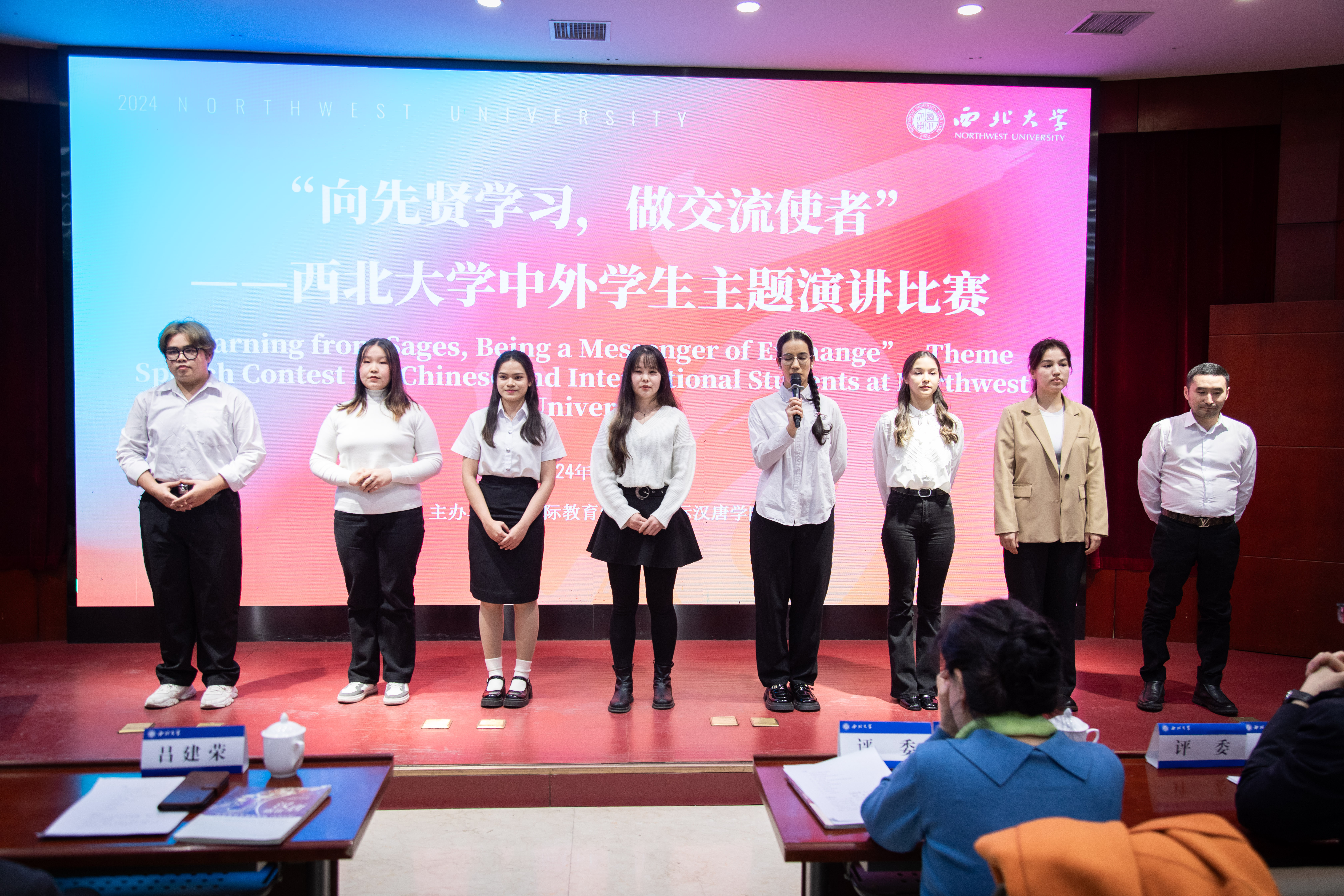 吕建荣在致辞中强调乐鱼网页版页面登录坚持“发扬民族精神,融合世界思想,肩负建设西北之重任”的办学理念,积极推动国际交流合作、促进文明互鉴和民心相通。他指出,学校通过多个平台,打造了一系列品牌活动,营造多元文化交流融合的校园氛围,加深中外学生对不同文化的理解,引导中外学生做西大精神的践行者、中国文化的传播者、国际友好合作交流的推动者。他勉励参赛选手勇敢表达、展现风采、相互学习、增长见识、感悟文明、收获友谊,为中外文化交流贡献力量。