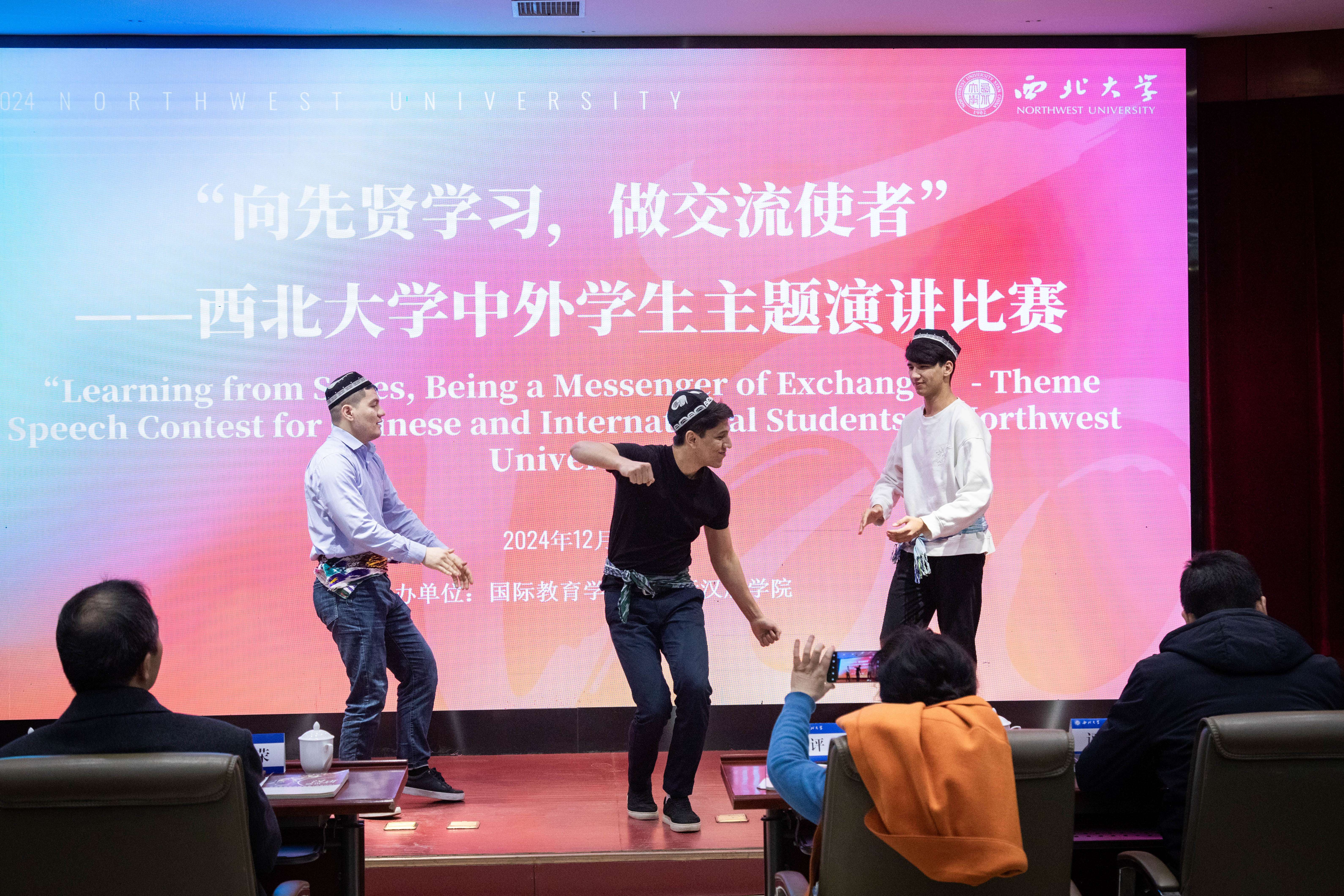 比赛期间,参赛同学以饱满的热情与昂扬的精神状态投入演讲,为观众呈现了一场视听佳宴。他们的演讲内容丰富多彩,既有对先贤精神的深刻解读,也有对中外文化差异的独到见解,还有对未来交流合作的热切期盼。活动期间,来自乌兹别克斯坦的国际学生为大家带来了精彩的舞蹈表演。