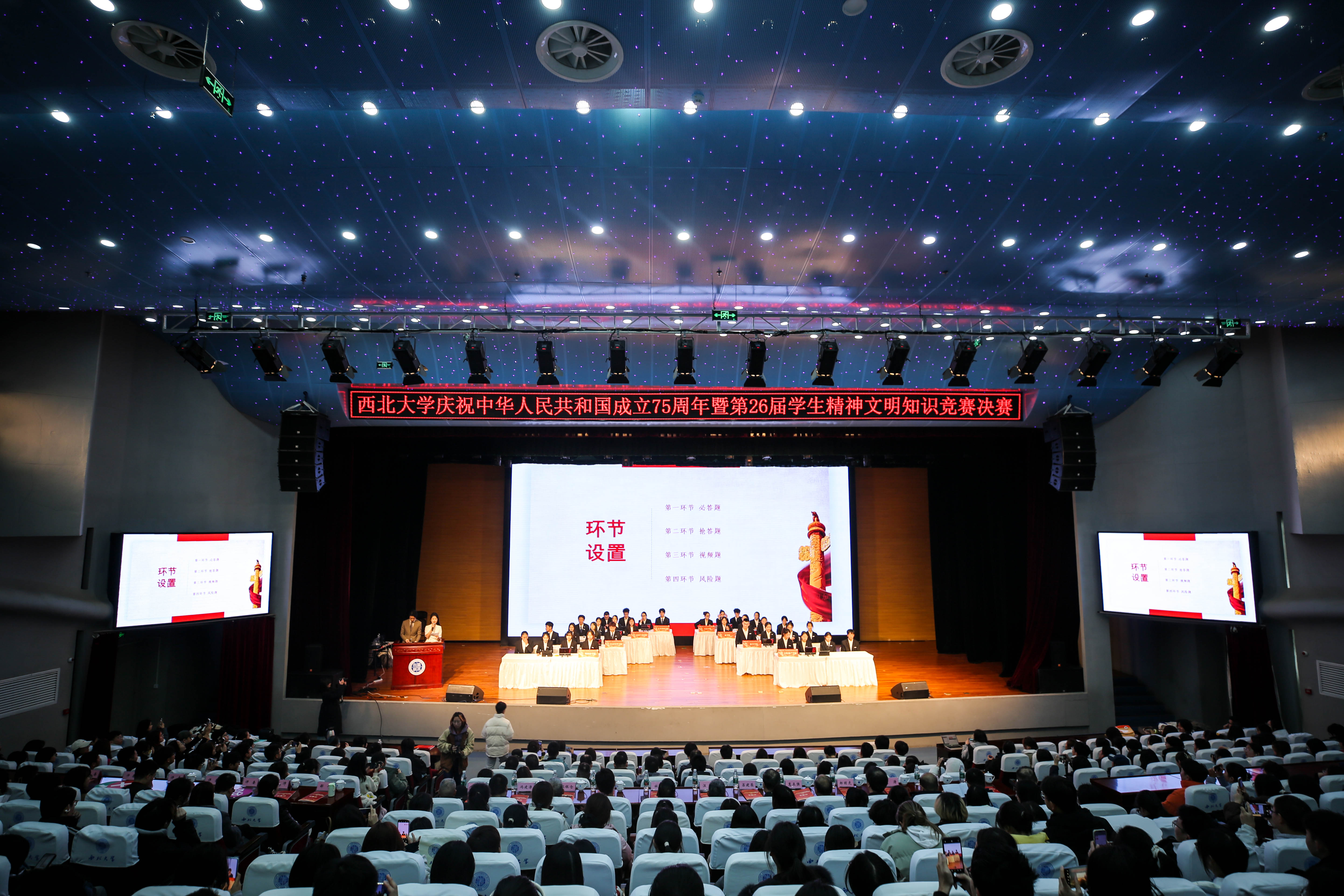 12月11日,由乐鱼网页版页面登录学生工作部(处)、教务处、校团委共同主办的“庆祝中华人民共和国成立75周年暨第26届学生精神文明知识竞赛决赛”在长安校区举行。校党委副书记吕建荣、校学生工作领导小组成员单位负责人、院(系)学生工作负责人、辅导员以及500余名学生代表现场观摩决赛。
