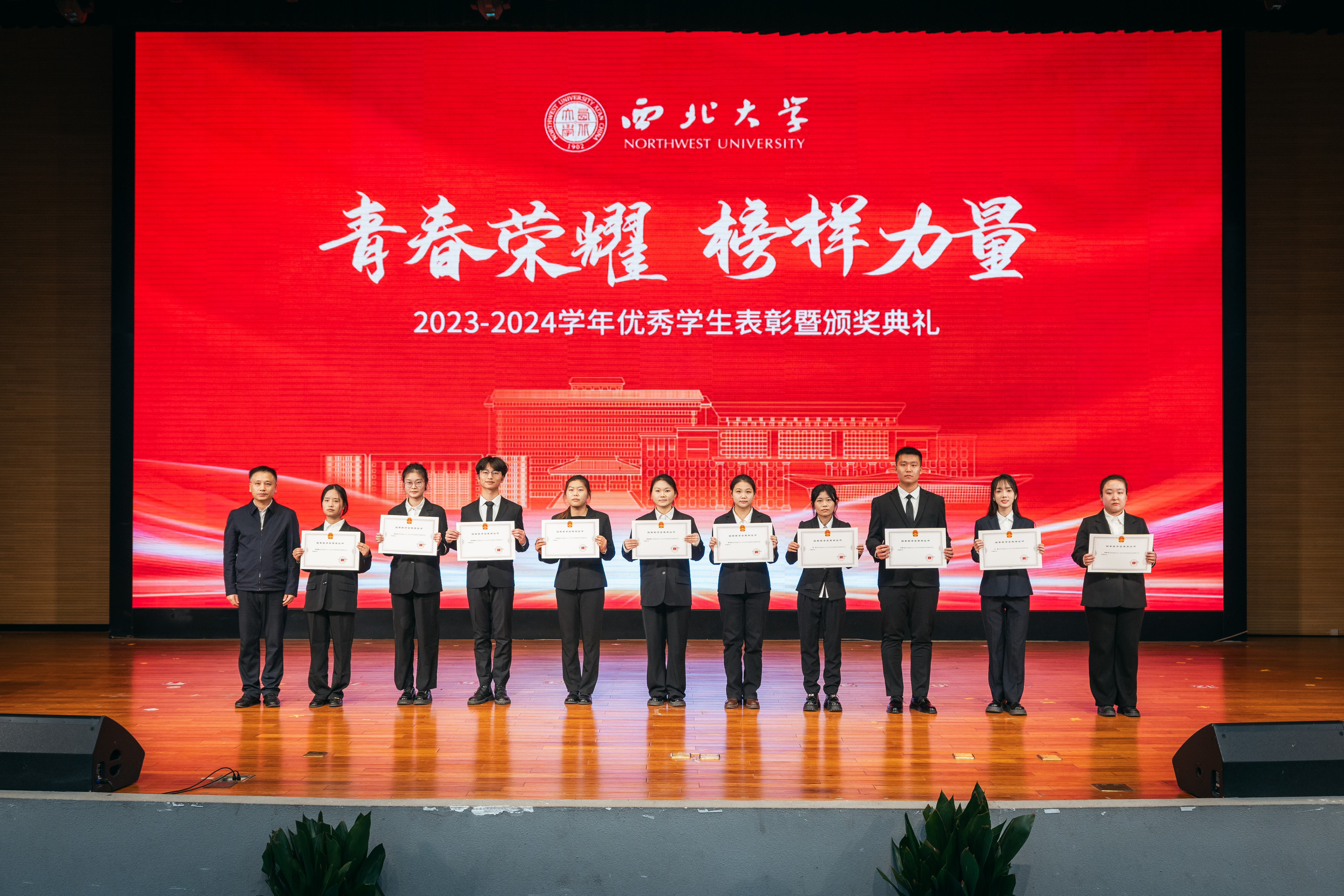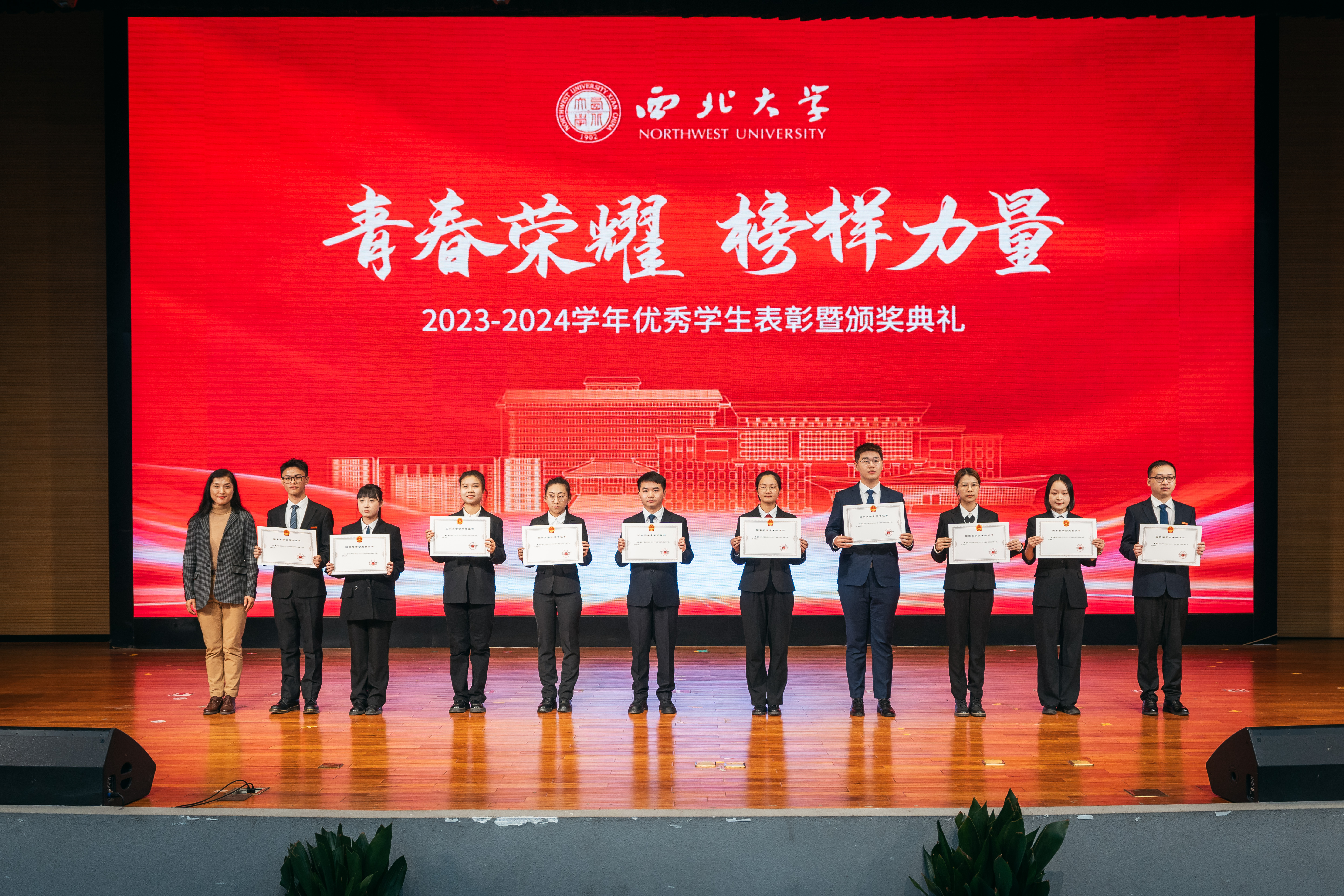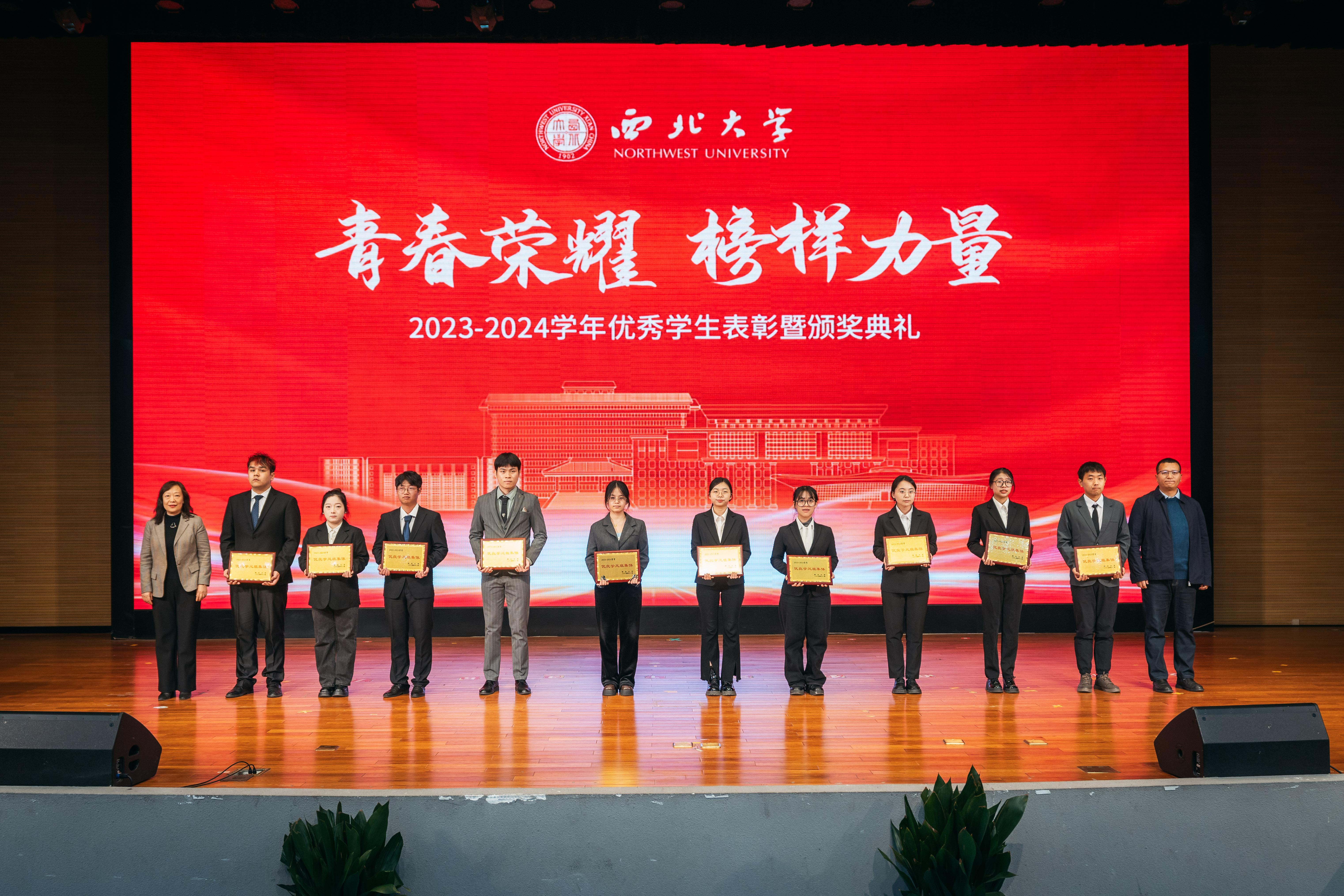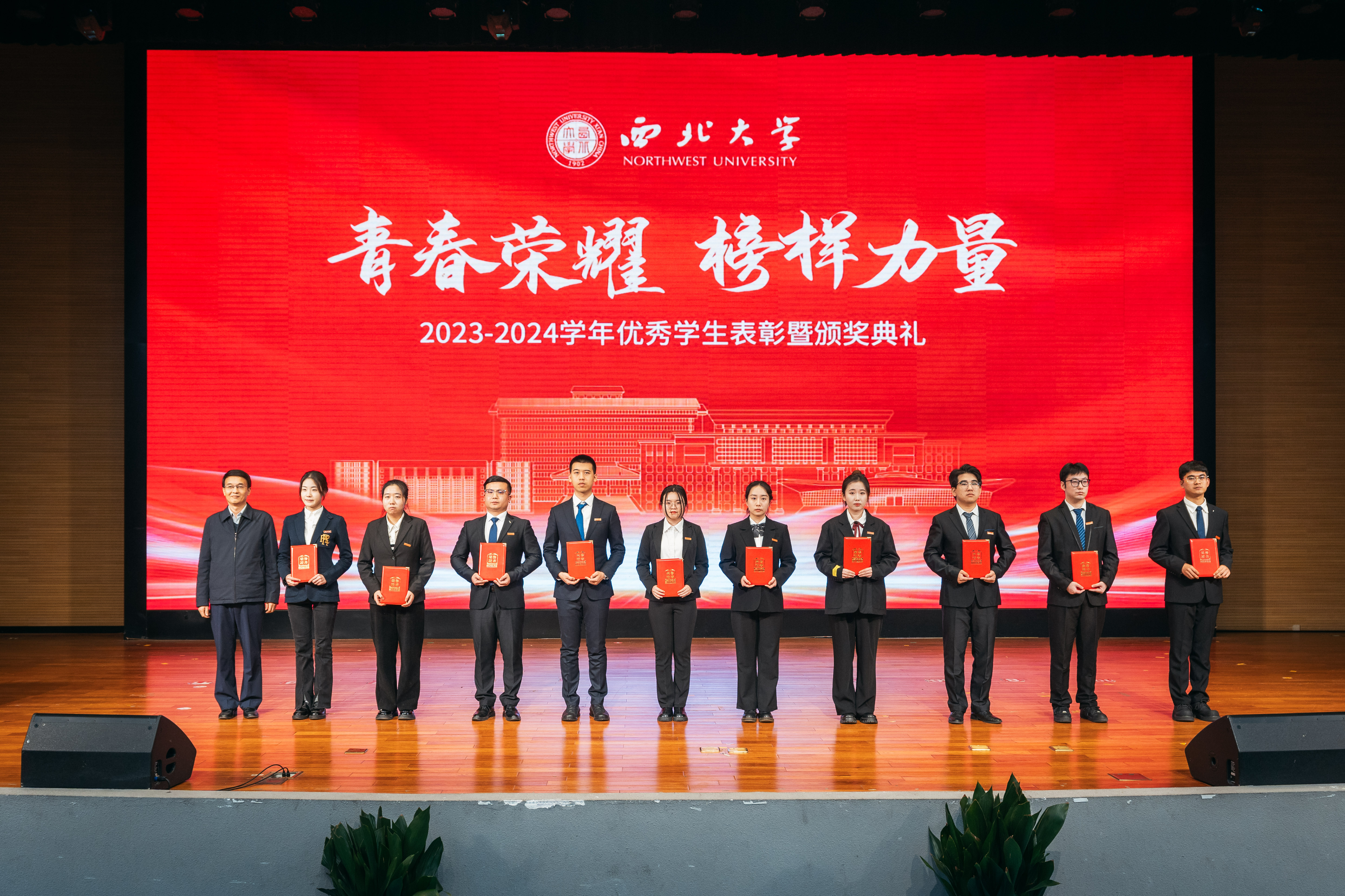 12月9日,乐鱼网页版页面登录2023-2024学年优秀学生表彰暨颁奖典礼在长安校区学生活动中心报告厅举行。全体校领导,优秀班主任代表、生命科学学院李忠虎、哲学学院耿艳玲,最美宿管代表王美玲、李平丽,校学生工作领导小组成员单位及相关部门主要负责人,各院(系)党政主要负责人,各院(系)学生工作负责人、辅导员和学生代表500余人参加典礼。活动由校党委副书记吕建荣主持。