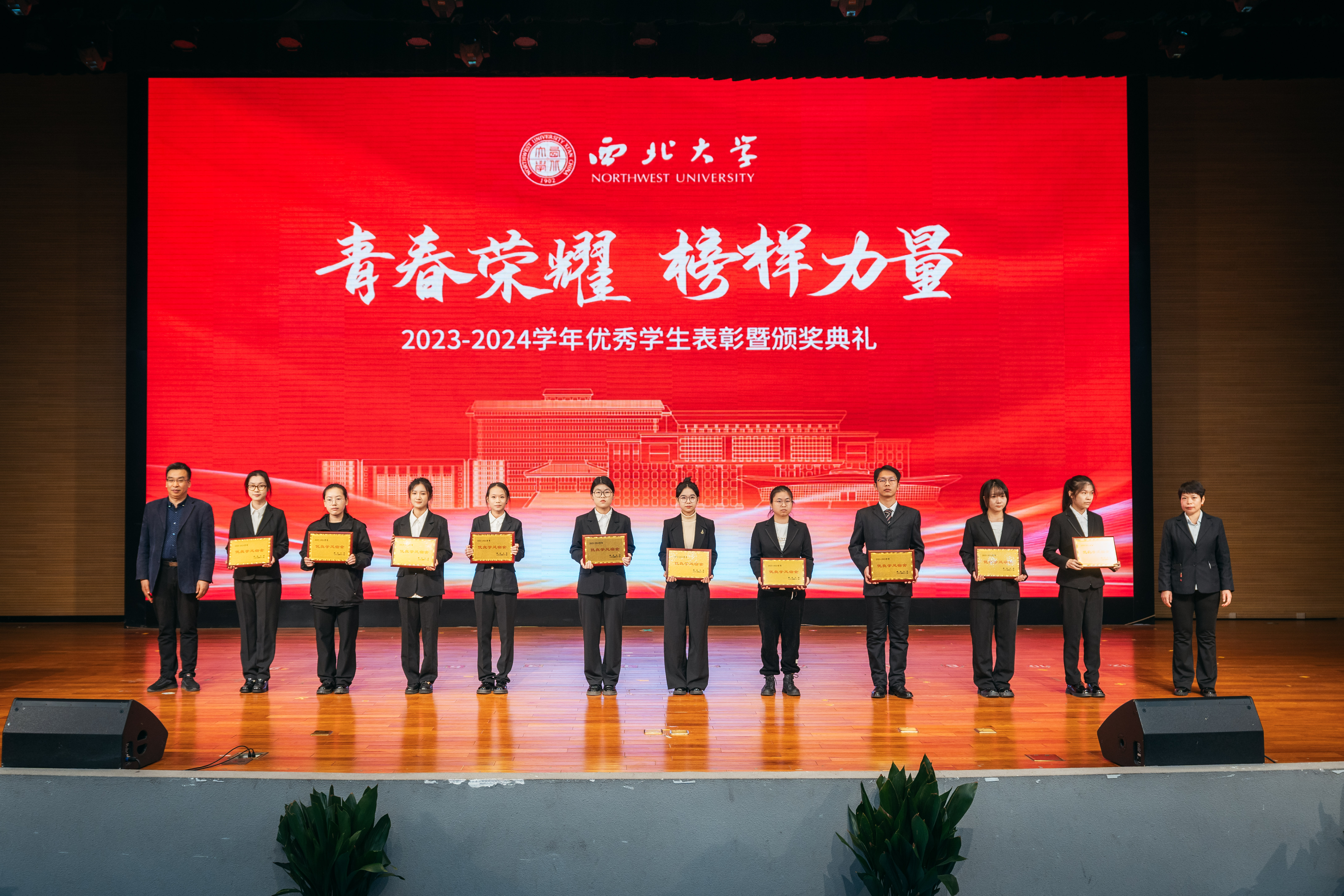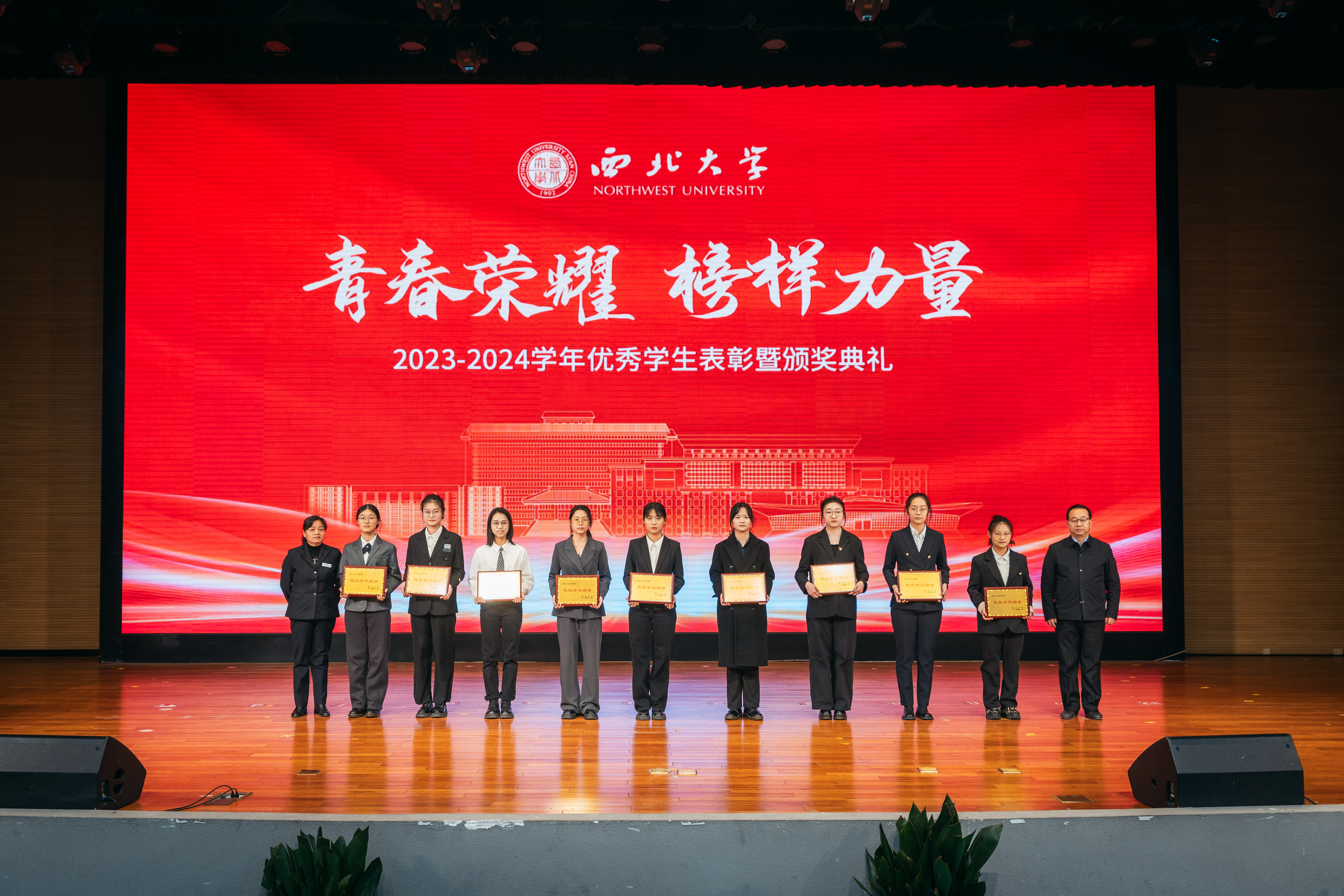 获奖学生代表们依次走上舞台,接受学校领导、老师和最美宿管代表颁发的荣誉证书和奖杯。台上朝气勃发,台下掌声雷动,这不仅是对获奖学生的肯定与鼓励,更是对全体学生的鞭策与激励。