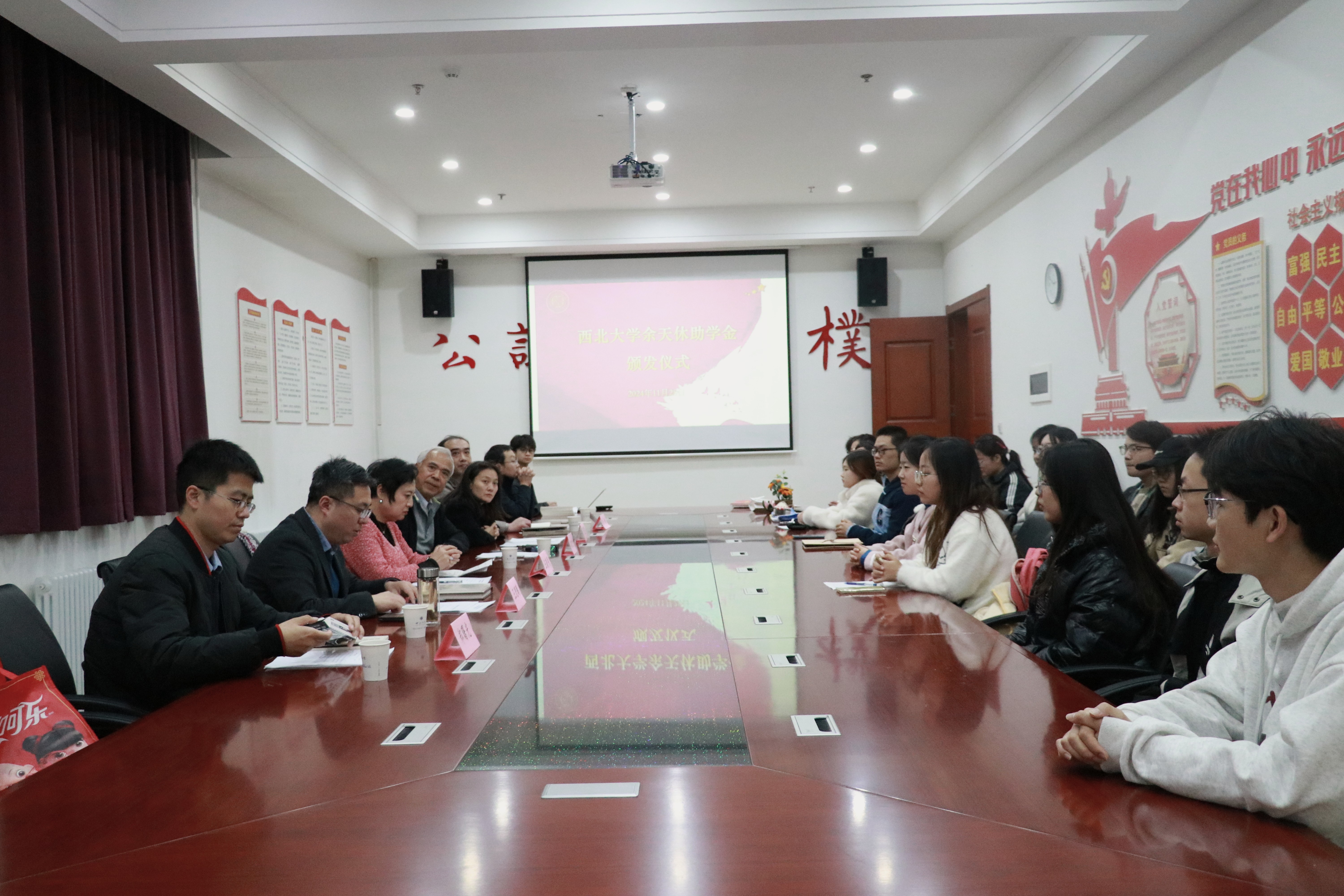 会见后,王晓明、郝宏贤出席2024年度“余天休助学金”发放仪式,并与受助学生座谈交流。
