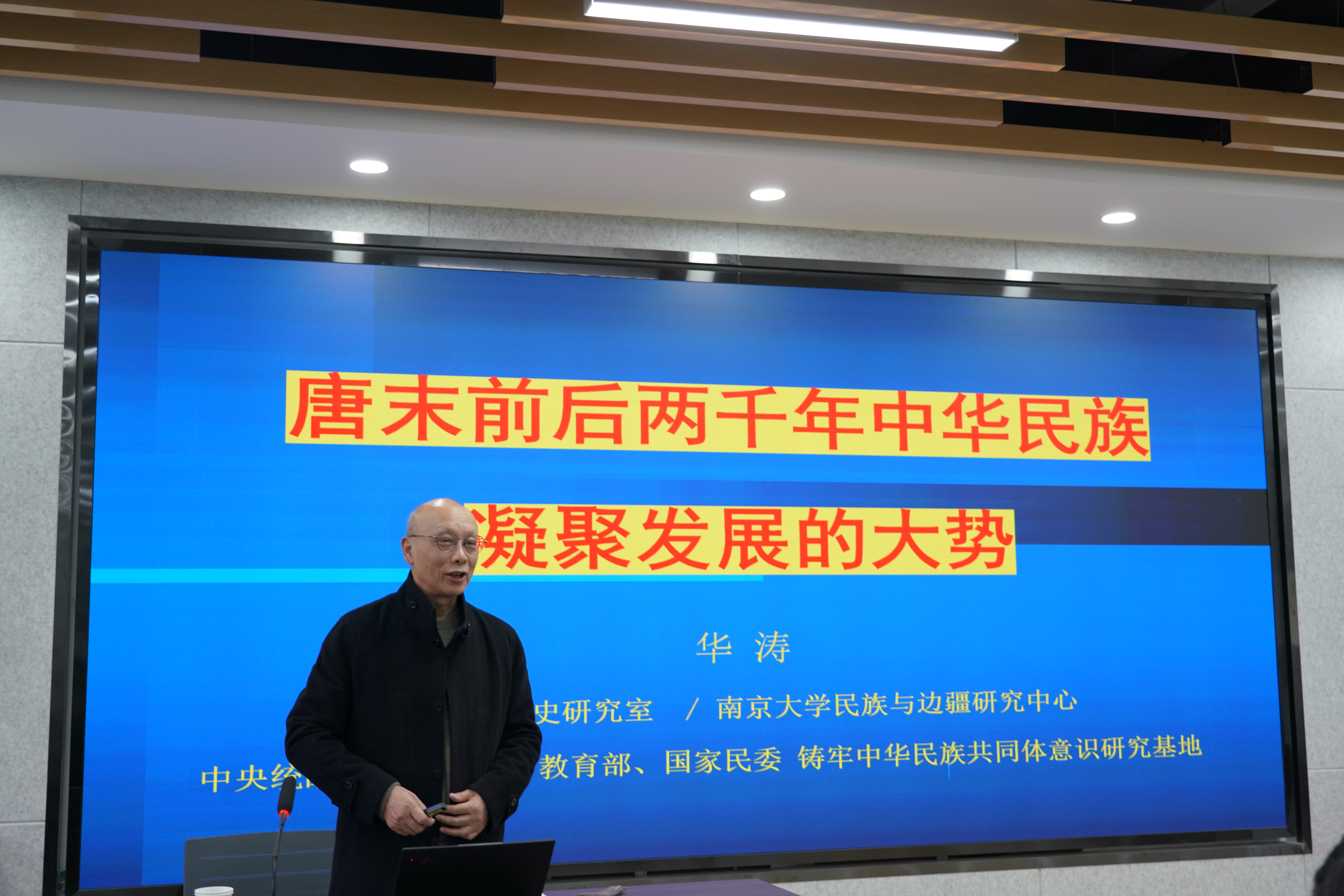 华涛首先回顾了南京大学元史研究室和乐鱼网页版页面登录著名学者侯外庐先生、马长寿先生的渊源,在分析了“民族”和“中华民族”两个概念提出的学术史后,指出需要认识费孝通先生提出的中华民族“多元一体”的背景是汉民族起凝聚作用和各民族存在多层认同;唐朝形成了高度发达和相对统一的华夏—汉文化和作为中华民族凝聚核心的汉族。随后对唐后千年民族凝聚和发展的特点、辛亥革命后各方人士有关统一多民族国家观念的演化以及蒙古族和回族的中华民族认同意识的发展情况进行了阐述。华涛指出只有充分理解中华民族发展的复杂性才能从学理上理解“铸牢中华民族共同体意识”这一伟大议题的核心——“认同感”和“凝聚力”。
