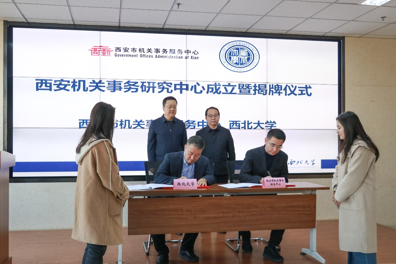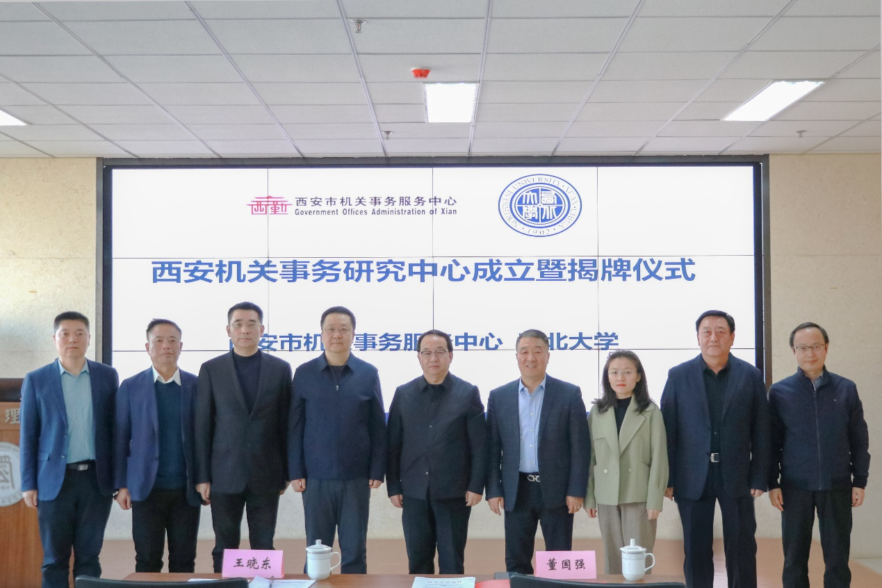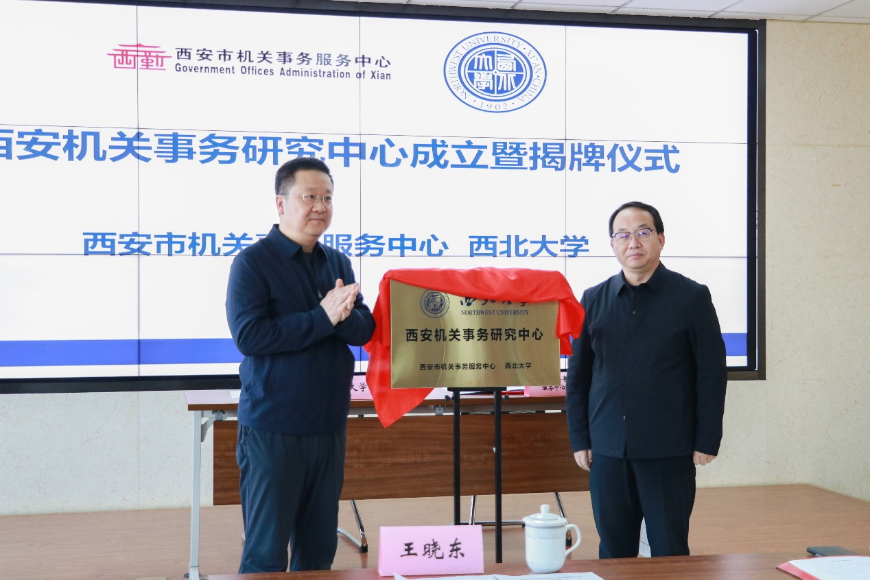 揭牌仪式上,董国强宣读了关于成立乐鱼网页版页面登录西安机关事务研究中心的通知并宣布中心成立;王晓东和董国强共同为研究中心揭牌。