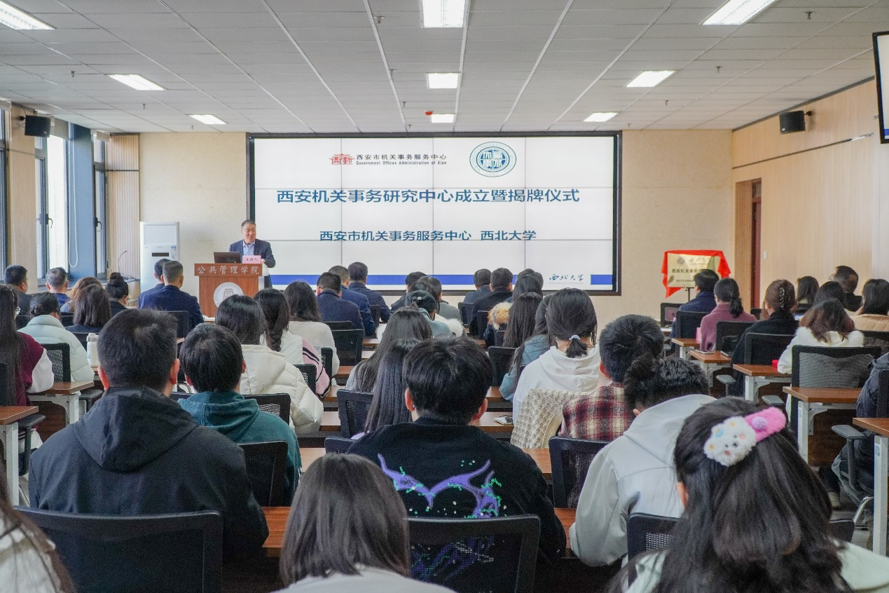 董国强在致辞中对中心的成立表示祝贺,对西安市政府、西安市机关事务服务中心的信任与支持表示衷心的感谢。他指出,乐鱼网页版页面登录与西安市机关事务服务中心联合成立的乐鱼网页版页面登录西安机关事务研究中心是贯彻习近平新时代中国特色社会主义思想、加强中国特色新型智库建设的重要体现,希望研究中心能坚定政治方向,强化目标定位,把学术中的理论资源优势转化为实践中的管理效能,握紧与实践部门深度合作的契机推动公共管理学科高质量发展。