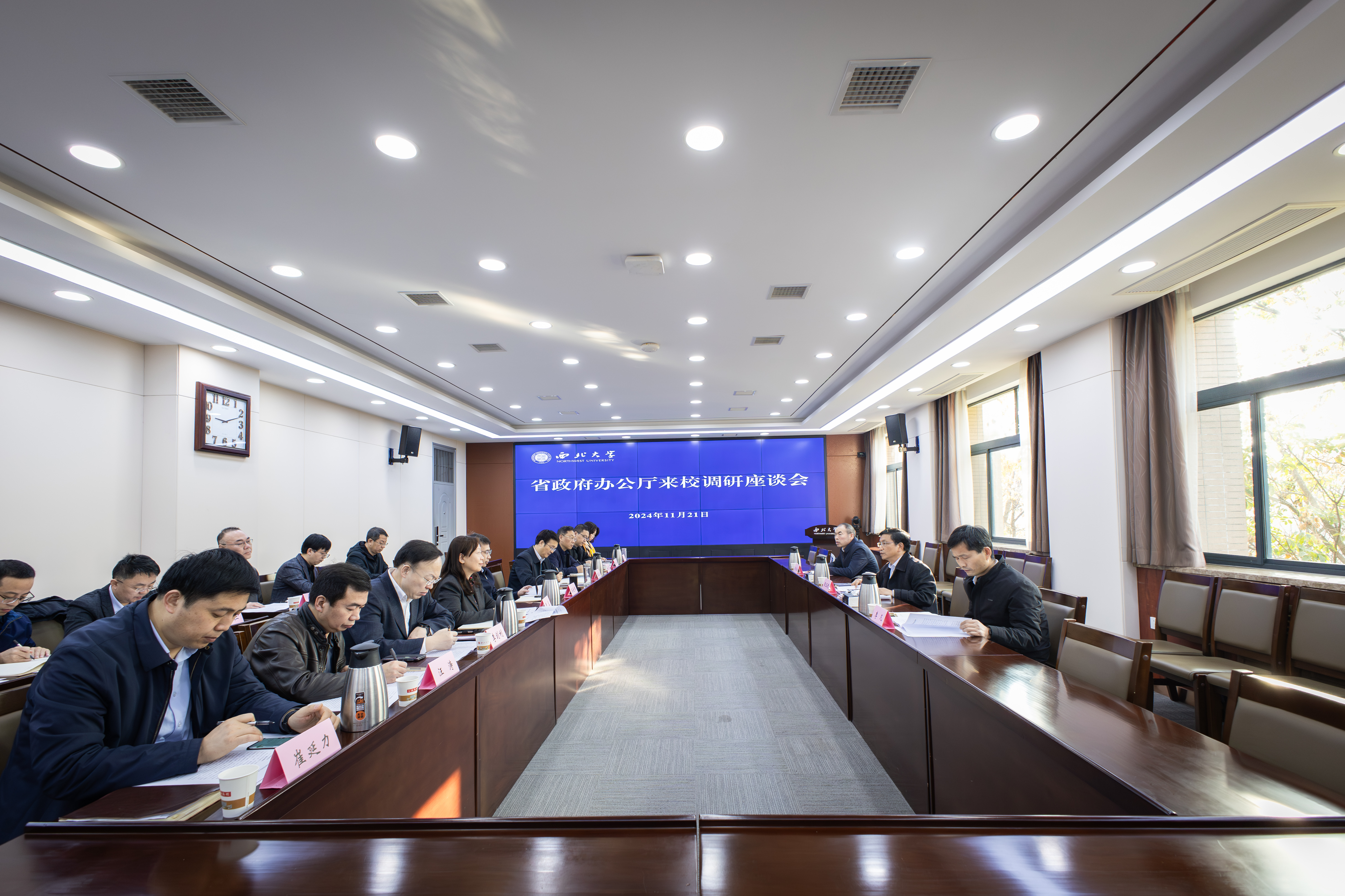 11月21日,陕西省人民政府办公厅副主任张玉民、办公厅社会发展研究处负责同志来校专题调研高校规划布局、学科专业设置调整优化等工作。校长孙庆伟,校党委常委、副校长张远军,相关职能部门和业务单位负责人参加座谈会。会议由副校长曹蓉主持。