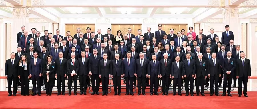 两国元首同参加会议的中意双方代表合影留念(图源新华社)