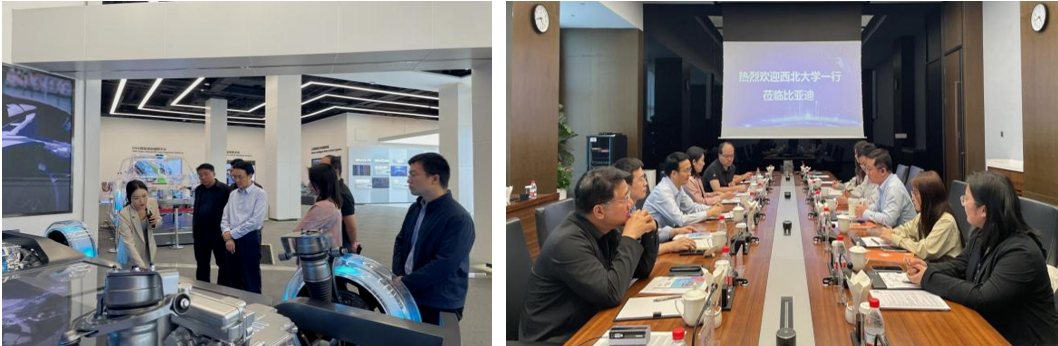 16日下午,张远军带队前往比亚迪股份有限公司访企拓岗,实地参观企业技术展示区,深入了解公司创新发展历程、全球市场布局及人才需求体系。交流会上,比亚迪人力资源处招聘总监余昌祎介绍了公司发展战略、产业布局、人才需求及员工发展通道,并希望双方深化合作、携手引才育才。张远军介绍了学校的学科优势、人才培养特色和毕业生情况,期待双方进一步拓宽合作、推进产教融合、强化供需对接,实现校企共赢。