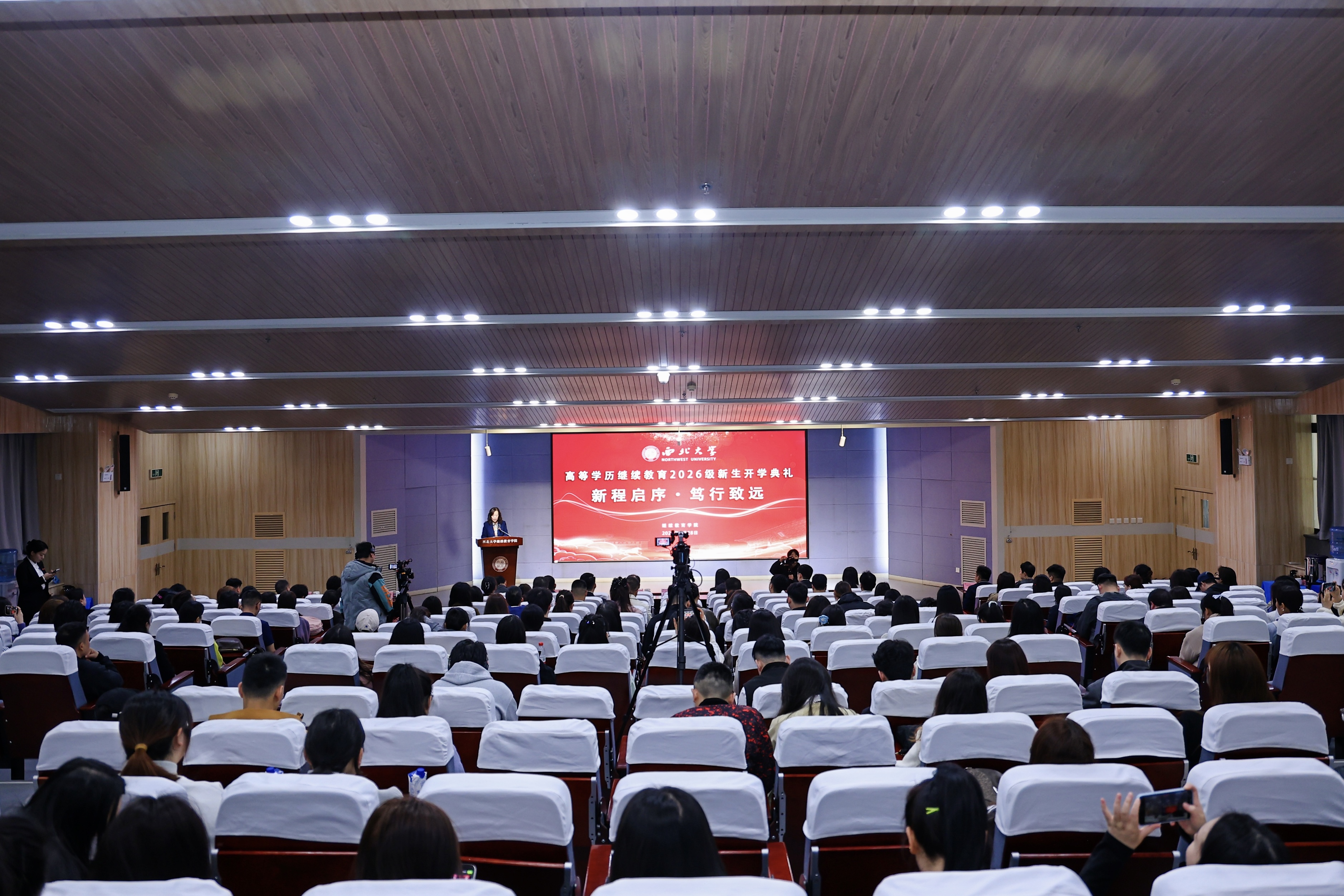曹蓉在致辞中向怀揣梦想、重返校园的新生表示热烈欢迎与诚挚祝贺。她强调,继续教育是乐鱼网页版页面登录办学体系的重要组成,更是国家构建终身学习体系、建设教育强国的重要支撑。学校服务全民终身学习,以培养复合型、应用型高素质人才为目标。她希望新生坚定信念、笃行不怠,坚守初心追逐梦想;勤学善思、守正创新,知行合一注重实干;崇德修身、勇担使命,胸怀家国作出贡献。持续在百廿学府的文化浸润和知识滋养中锤炼品格、增长才干;在统筹工作、家庭与学习中实现新的成长与突破,努力成为新时代的奋进者,不负时代,不负华年!