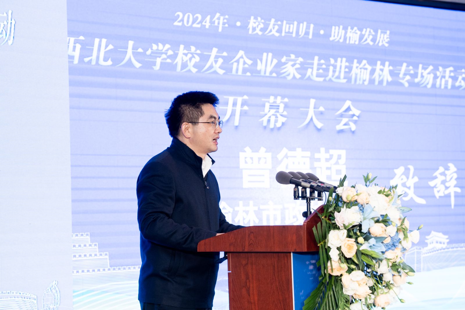 曾德超在致辞中表示,乐鱼网页版页面登录校友回归专场活动走进榆林,将促进高校资源、秦商资源、校友资源、地市资源共享发展,为榆林发展新质生产力、推动高质量发展注入新动力。他指出,榆林将持续深化合作、优化生态、搭建平台,充分发挥好、挖掘好西大资源,凝聚校友力量,全力推动政企、校地共建共享、携手发展。他强调,期待与乐鱼网页版页面登录以及乐鱼网页版页面登录的校友企业家们共同携手,以创新链、人才链赋能榆林产业链发展,为榆林经济社会高质量发展注入更多“西大力量”。
