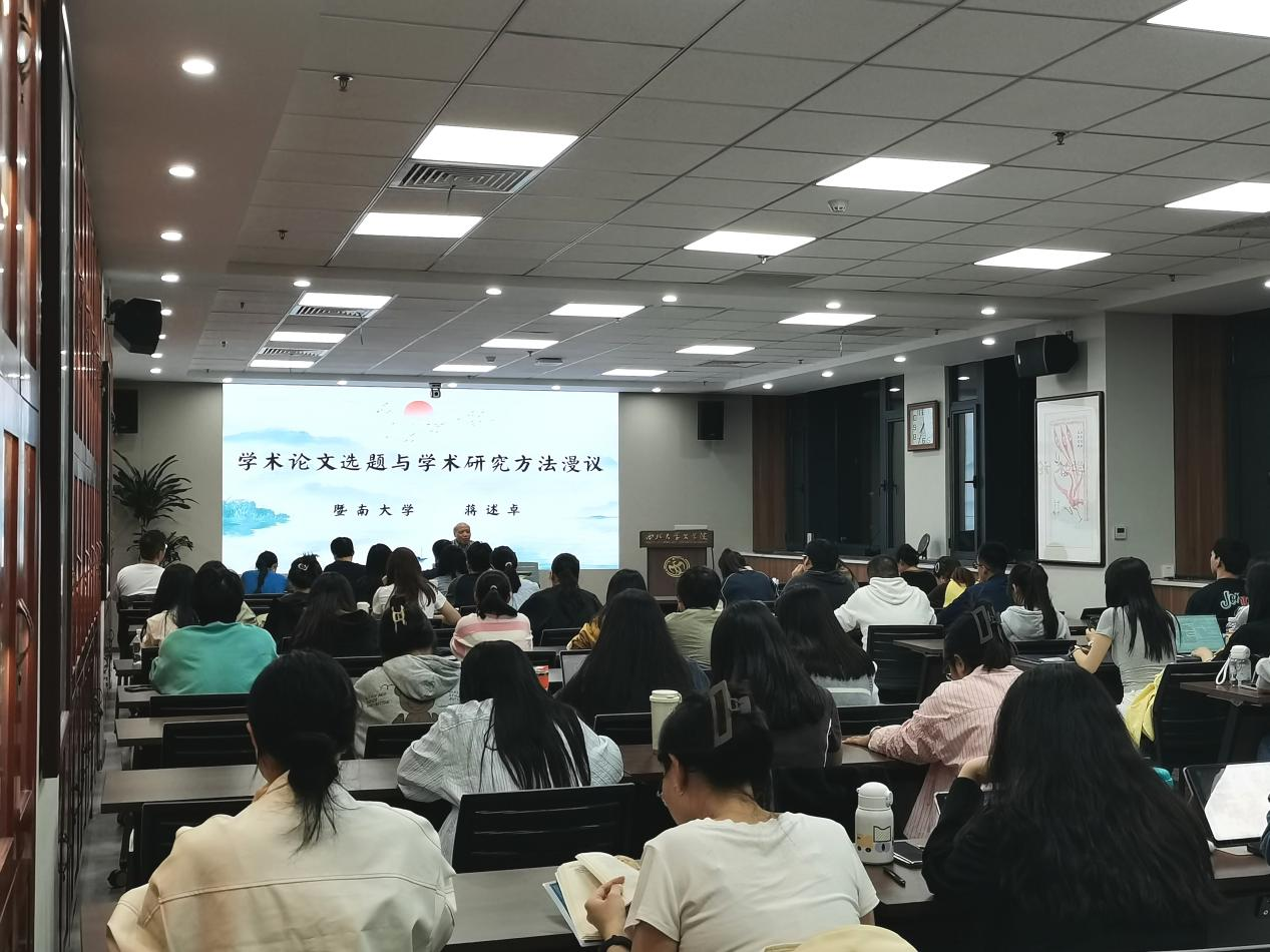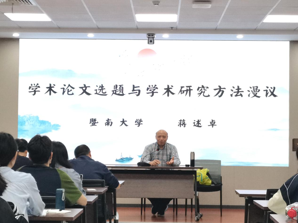 10月21日晚,暨南大学蒋述卓教授在乐鱼网页版页面登录长安校区作了题为“学术论文选题与学术研究方法漫议”的学术讲座。本次讲座由文学院谷鹏飞教授主持,文学院教师和博硕士研究生参加。