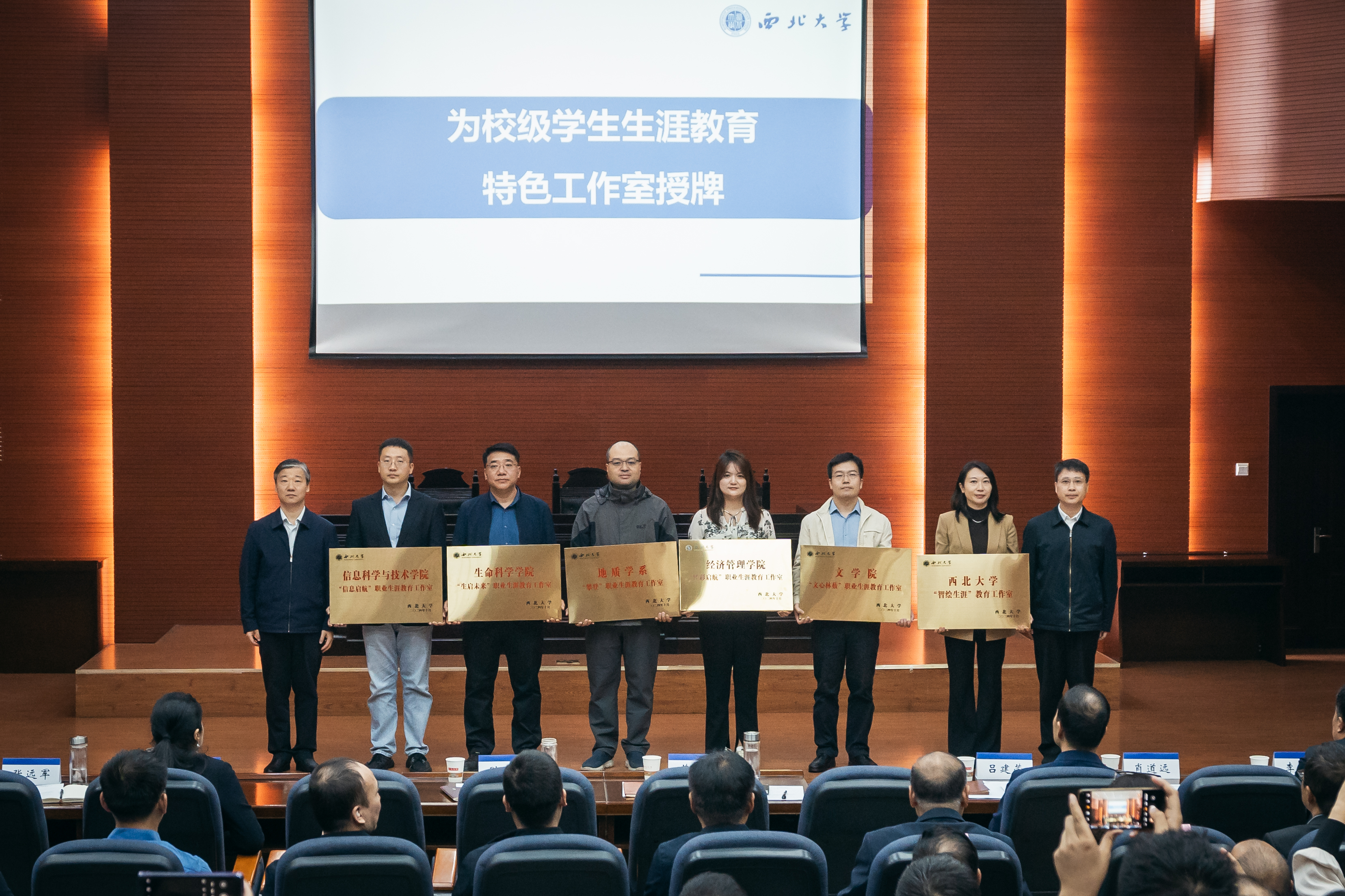 会上,蒋林、孙庆伟共同为学校首批学生职业生涯教育特色工作室集中授牌。