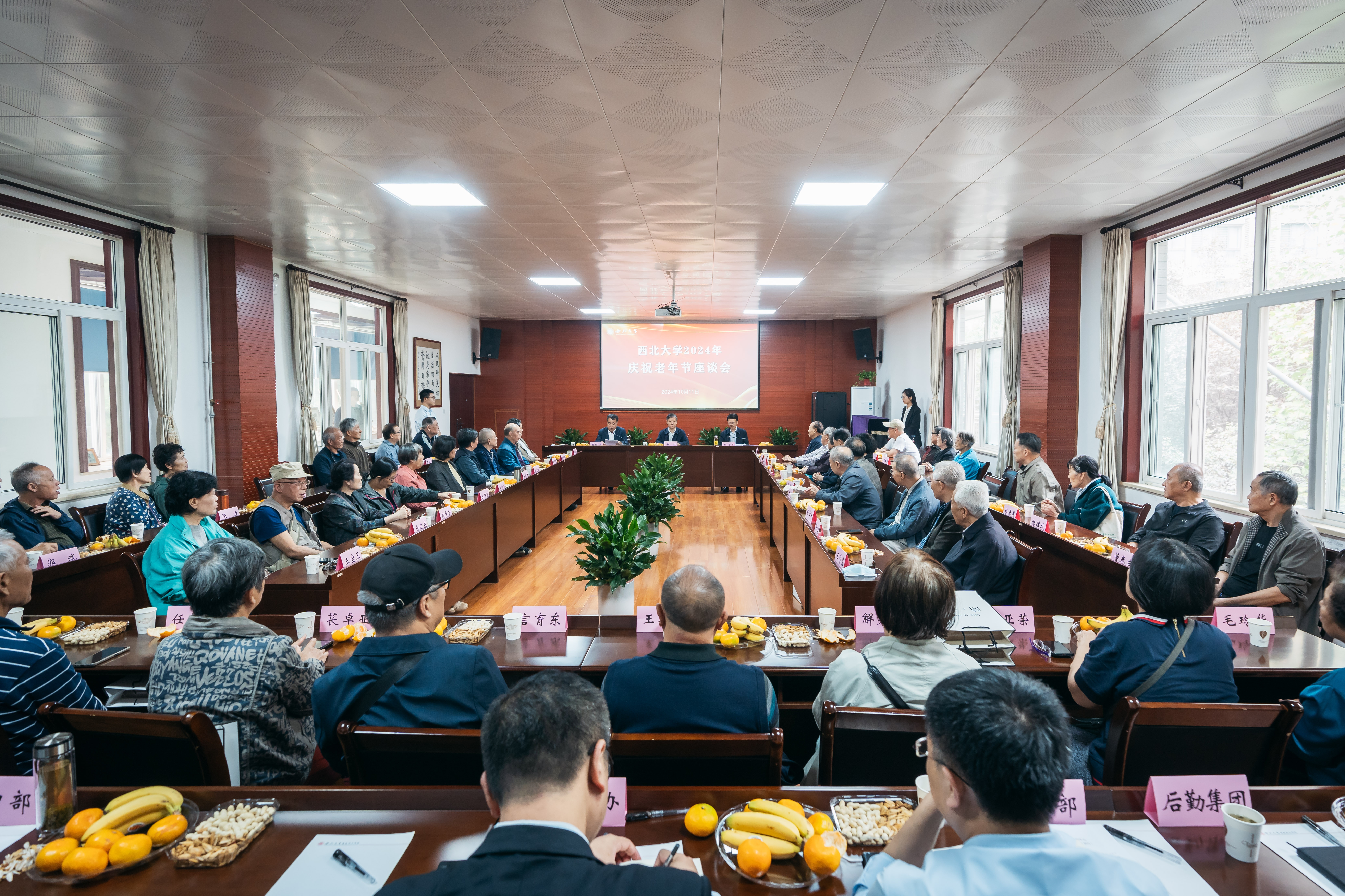 10月11日,乐鱼网页版页面登录2024年庆祝老年节座谈会在长安校区举行。校党委书记蒋林,校党委常委、副校长张远军、李振海以及学校相关职能处室负责人与离退休老同志代表欢聚一堂,共庆重阳佳节,共话发展新篇。座谈会由李振海主持。