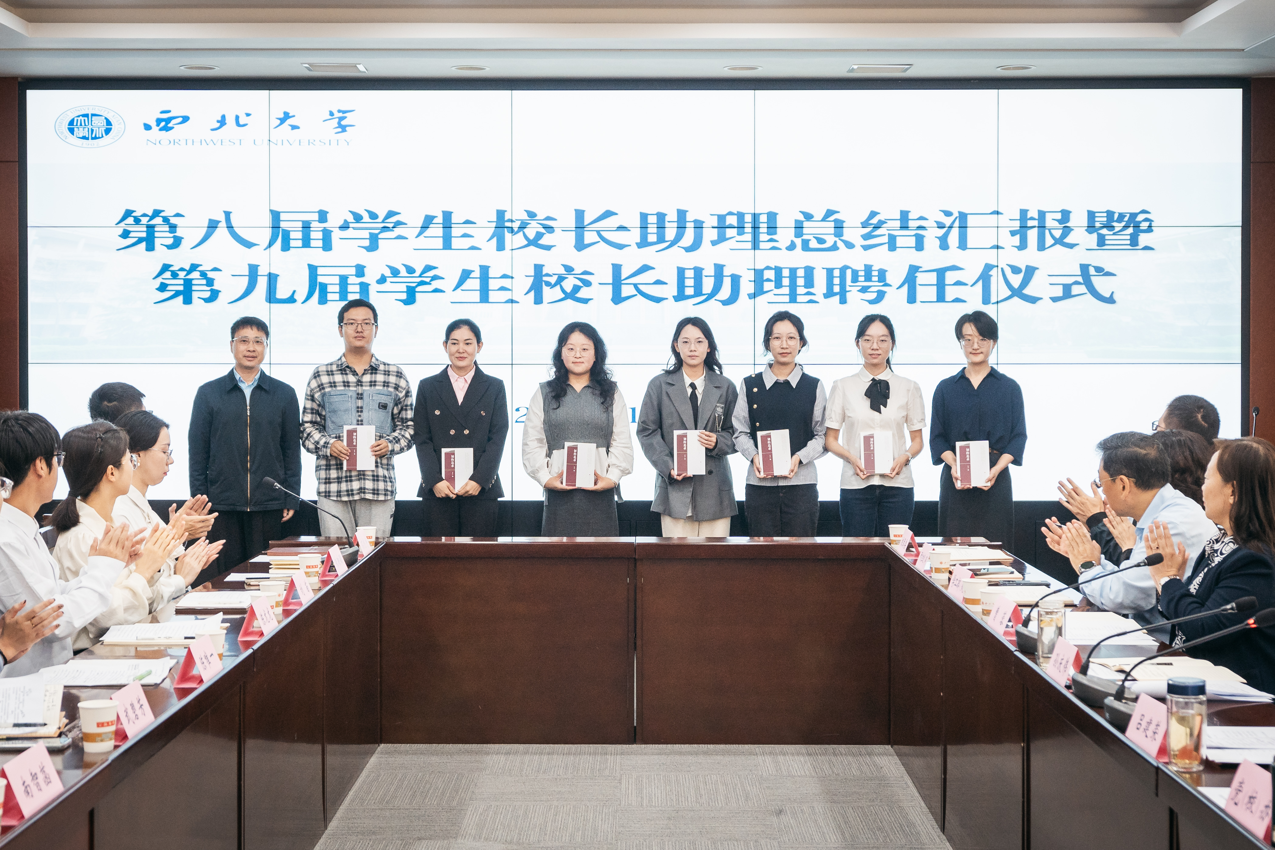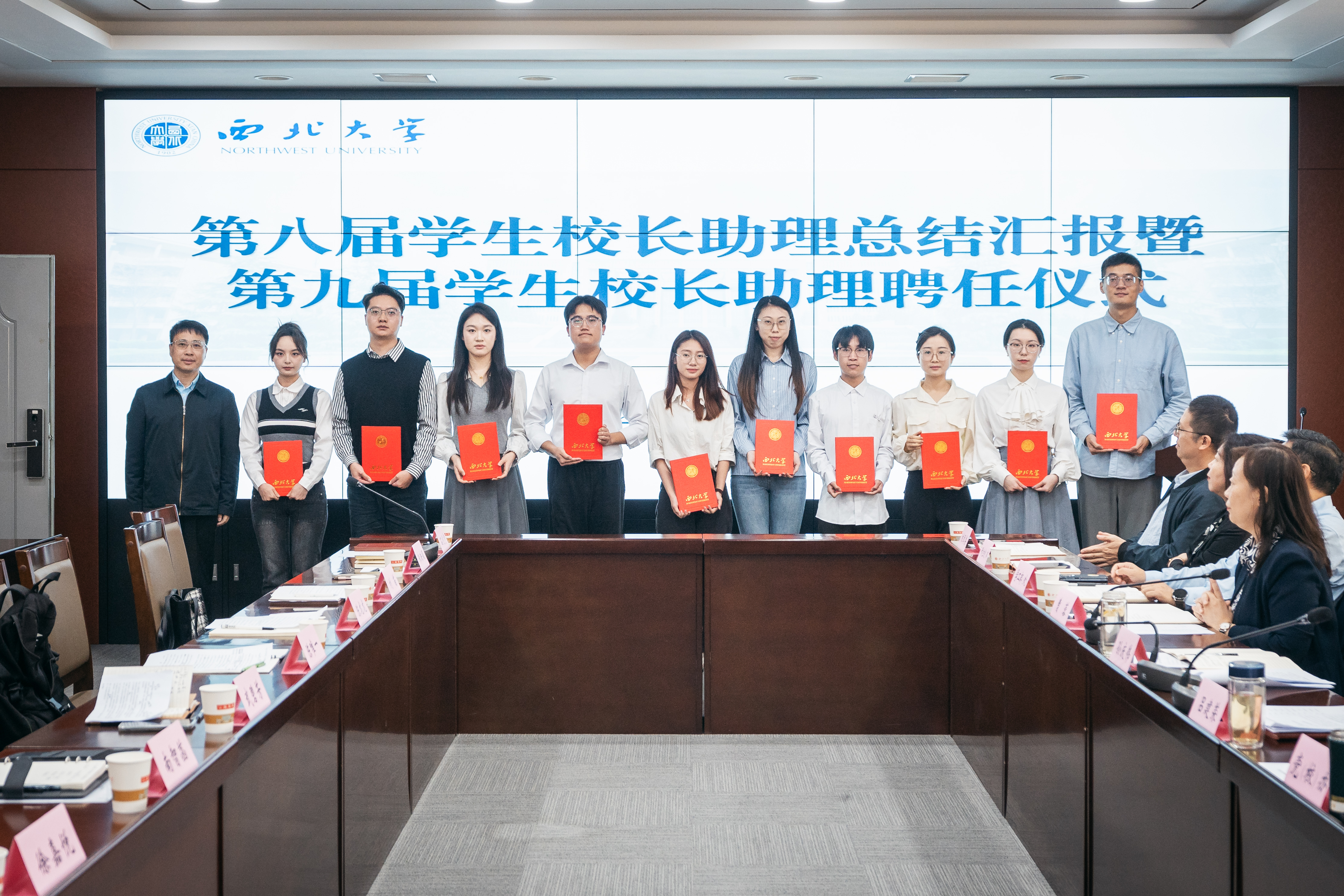 曹蓉宣读第九届学生校长助理名单,勉励受聘同学肩负好职责使命,要求相关单位充分重视学生校长助理在改进部门工作、推进民主治校中的作用,推动学生校长助理工作做实做细。孙庆伟为石恺宇、朱映颖、刘苗、陈龙龙、陈唯一、武碧芳、南智菡、徐嘉悦、高梓伦、高琦等10位学生颁发聘书。第九届学生校长助理依次作表态发言,表达了新一届学生校长助理履职尽责、真抓实干的信心决心。