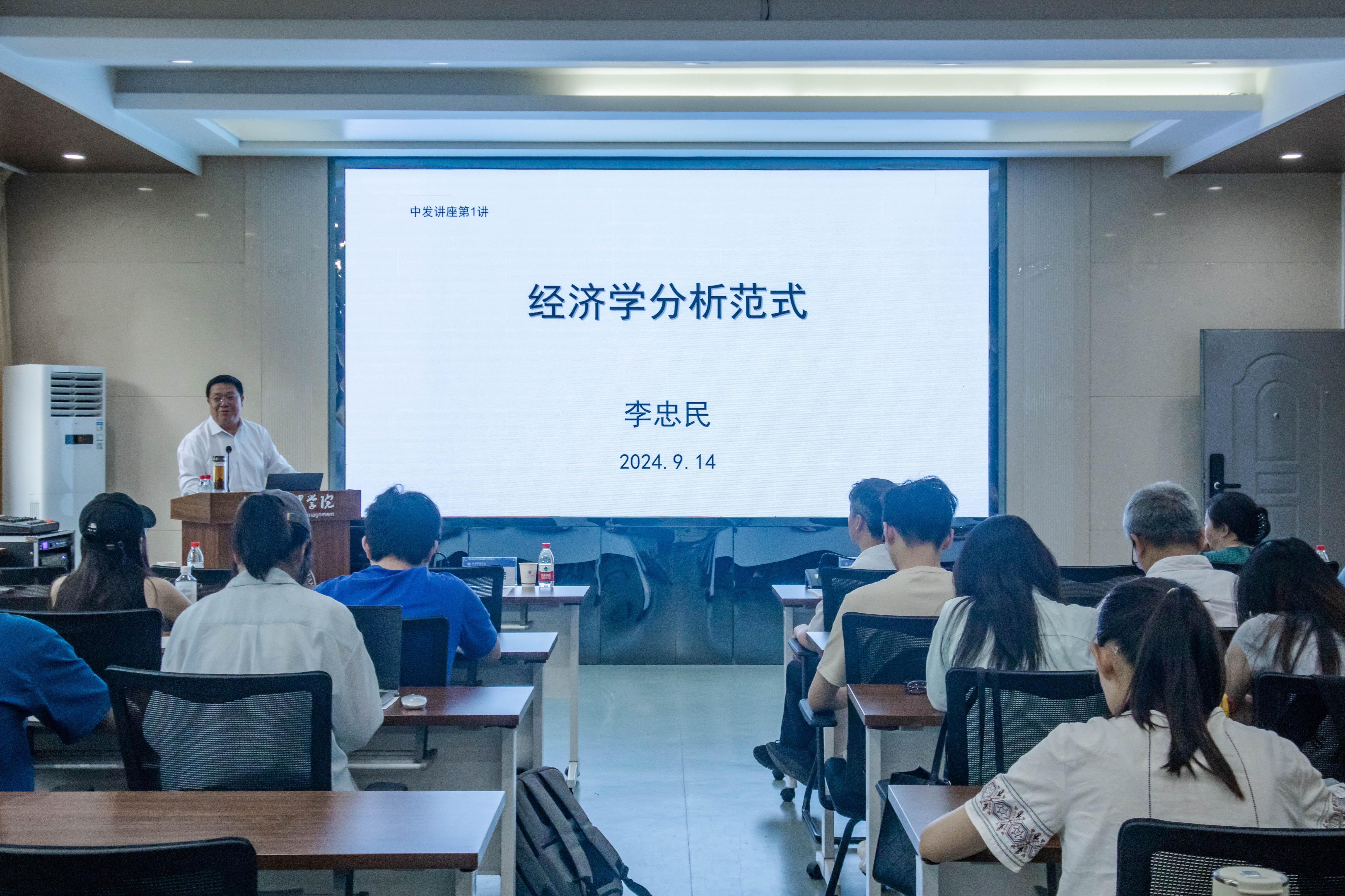 9月14日,乐鱼网页版页面登录杰出校友、陕西省政协副主席、博士生导师李忠民教授莅临经济管理学院,主讲“中国发展经济学讲座”第一讲——“经济学范式”。校党委书记蒋林教授出席并致辞,经济管理学院负责人主持讲座,师生80余人参加讲座。