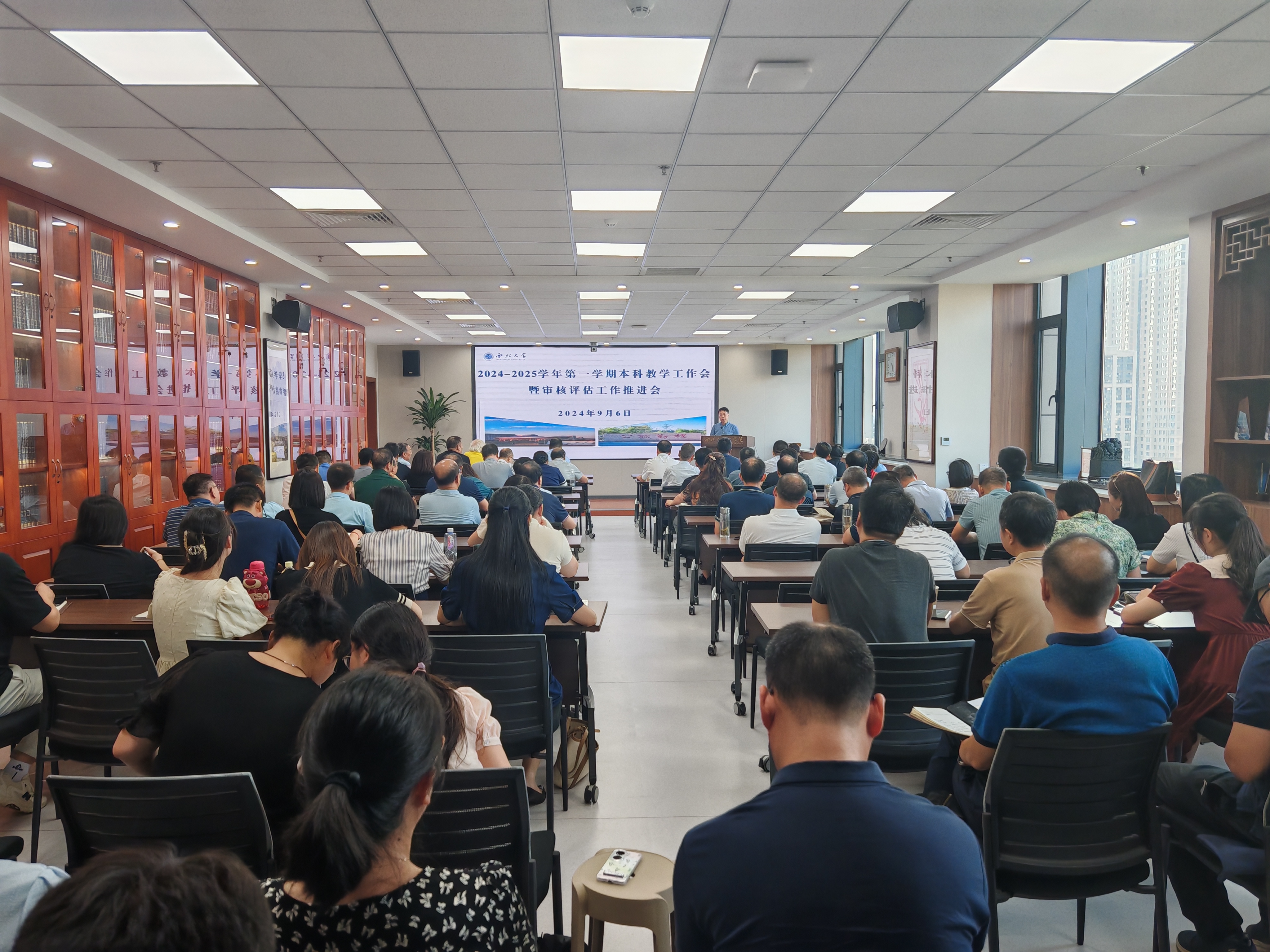 教务处负责人对近期审核评估具体开展情况进行了汇报,从时间规划、评估准备、材料撰写、档案整理等方面对学校层面、院系层面的工作任务分别进行了剖析,进一步明确了下一阶段的审核评估工作目标。同时结合年度重点工作任务,对需要提前谋划的人才培养政策、已经制定的教学运行方案和努力争取的教学成绩进行了详细分析,部署了下半年本科教学重点工作任务。