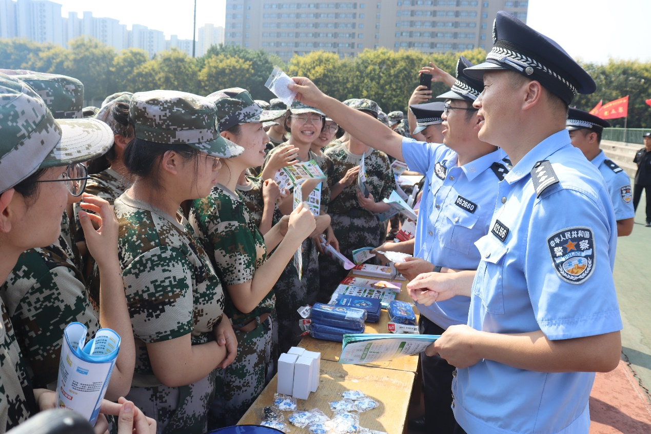 长安区郭杜派出所民警结合典型案例详细讲解了当前刷单类诈骗、招工类诈骗、裸聊诈骗、网络交友类、冒充客服类等校园高发的诈骗类型,揭示不同诈骗的套路模式,梳理各类诈骗应对方法;长安区禁毒大队民警以“拒绝毒品,珍爱生命”为主题,宣讲相关法律法规,展示了仿真毒品介绍新型毒品种类,通过涉毒案例讲述毒品的伪装性、迷惑性及吸毒的巨大危害性;长安区交警大队安监中队民警讲解了交通法规及安全驾驶安全常识,并就骑乘未佩戴防护头盔、逆向行车、非法载人等违法行为实际案例及其危险后果进行了讲解。