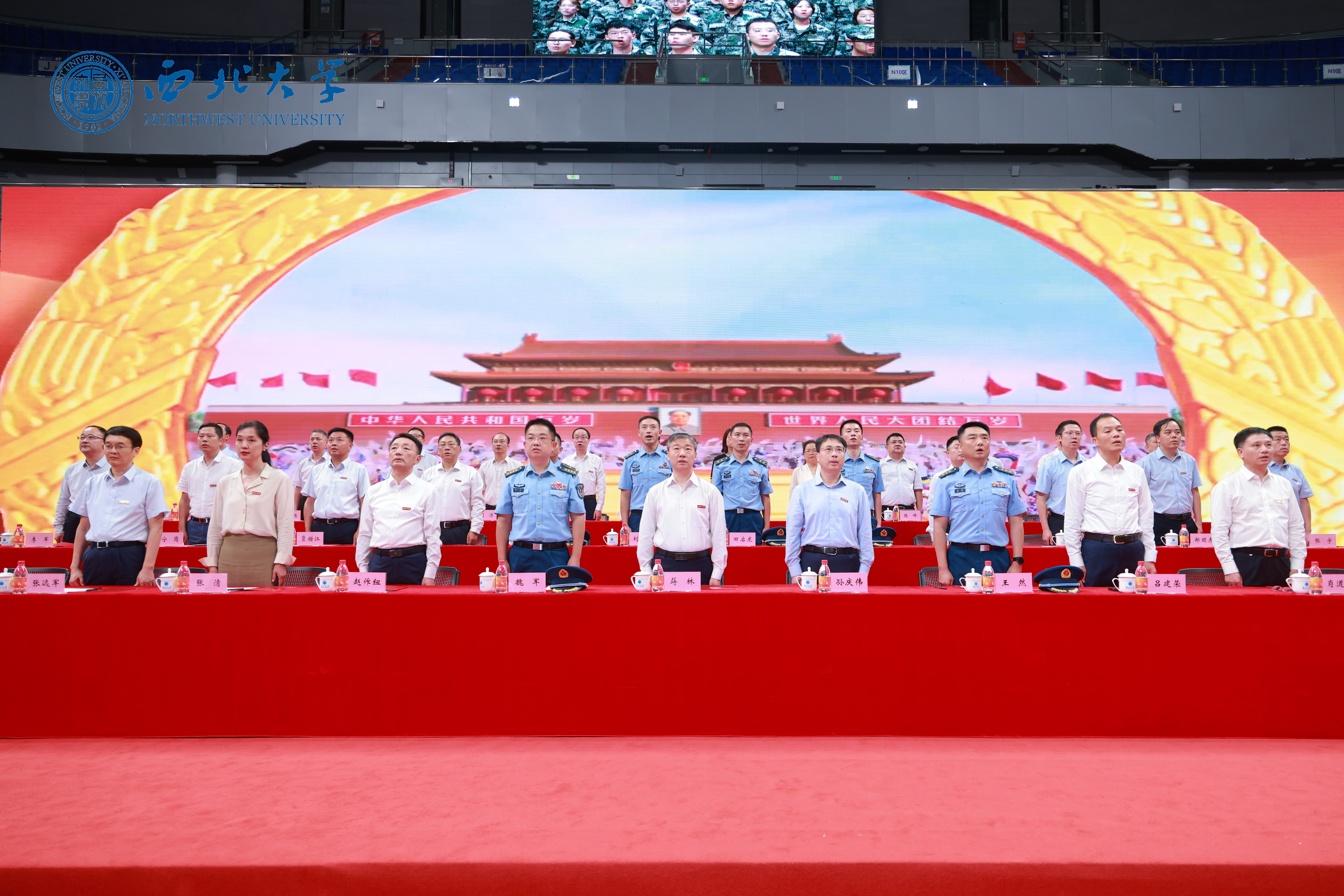 大会在《义勇军进行曲》的庄严旋律中拉开序幕,参加大会的师生、教官全体肃立,齐唱国歌。