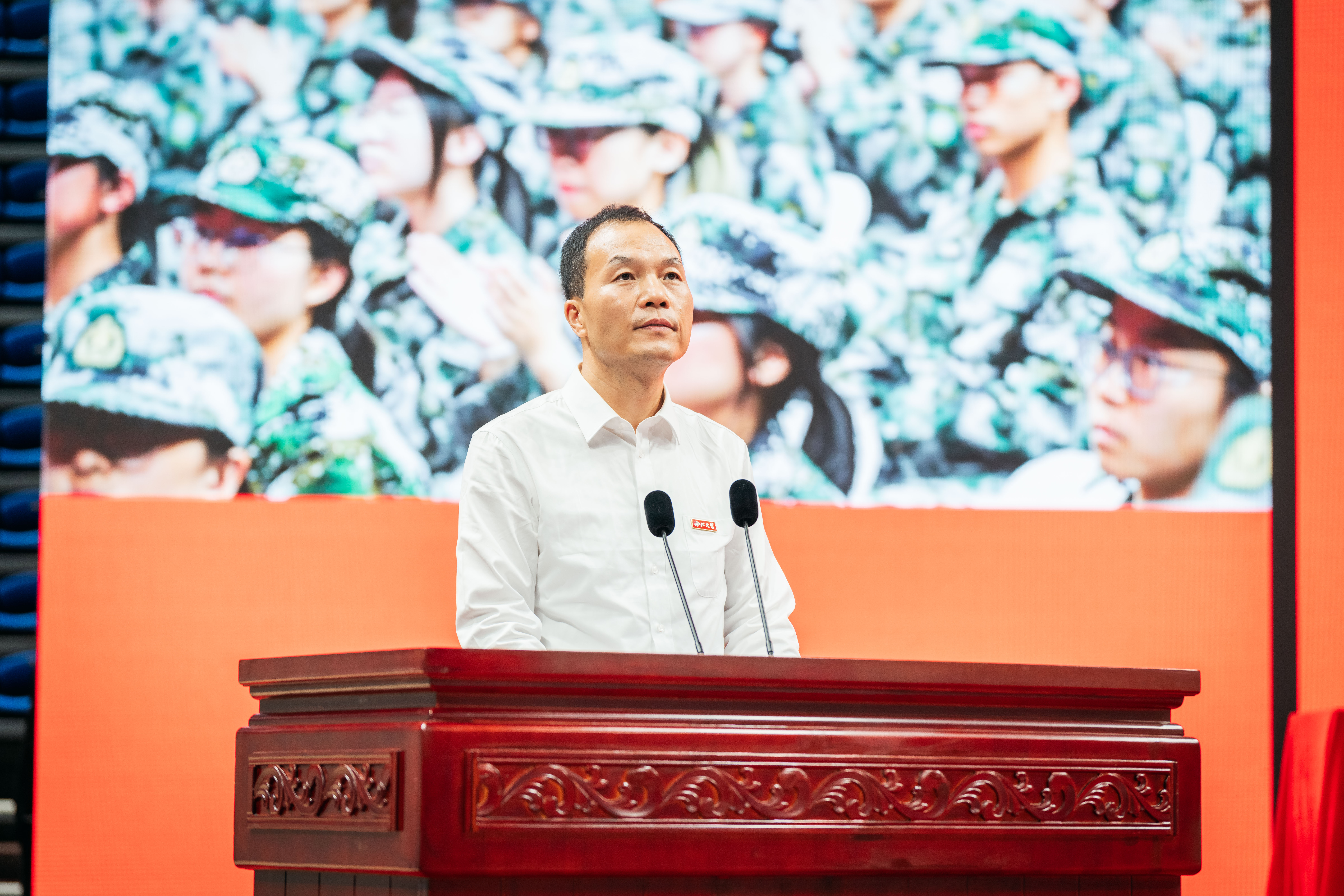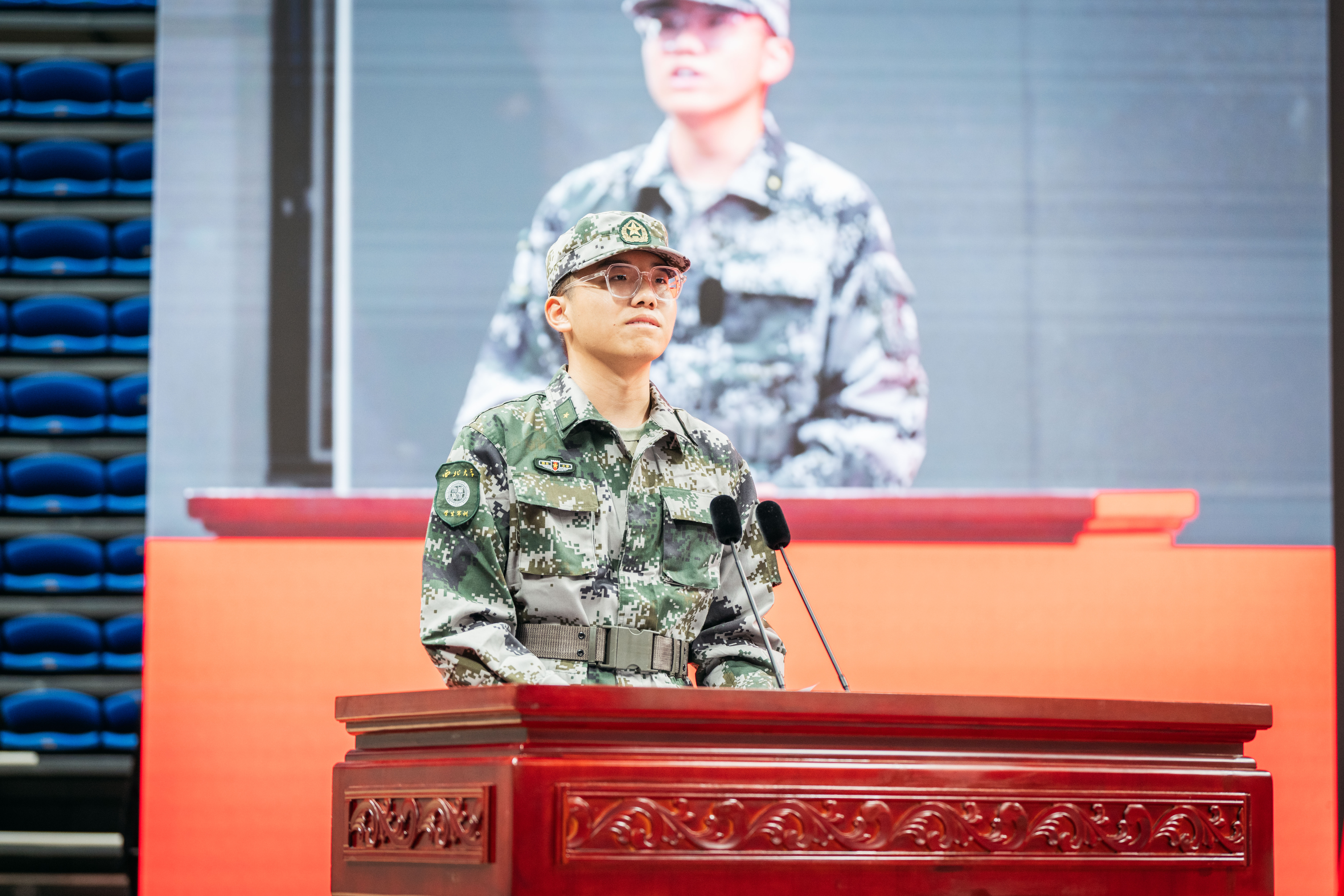 新生代表文学院唐云龙同学在发言中表示,军训不仅是一场对体能与意志的磨砺,更是对纪律观念、团队精神和爱国情怀的深刻洗礼。当今世界正在面临百年未有之大变局,青年学子作为国家国防的后备力量,必须增强国防意识与国防观念,肩负起时代赋予青年的神圣使命。