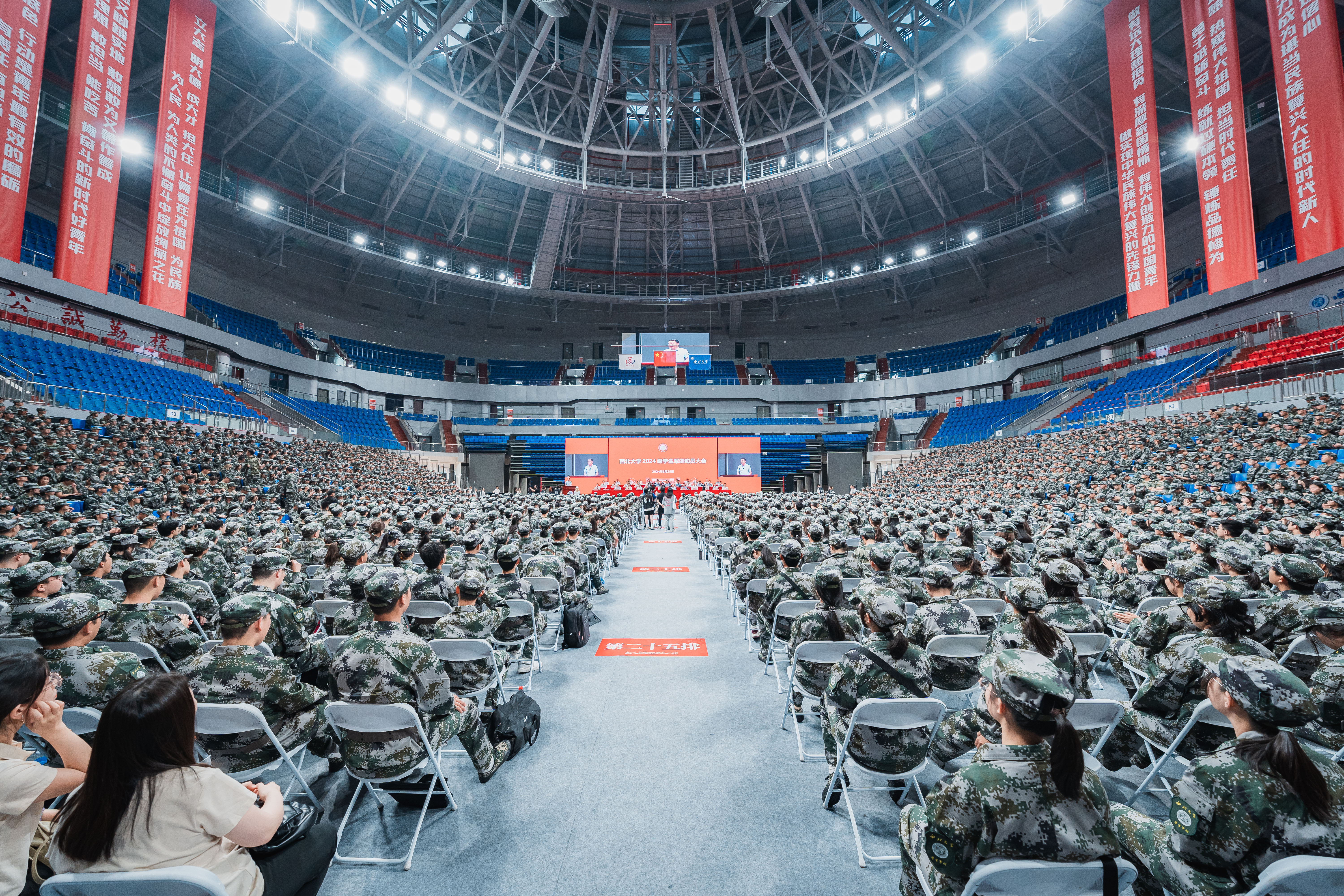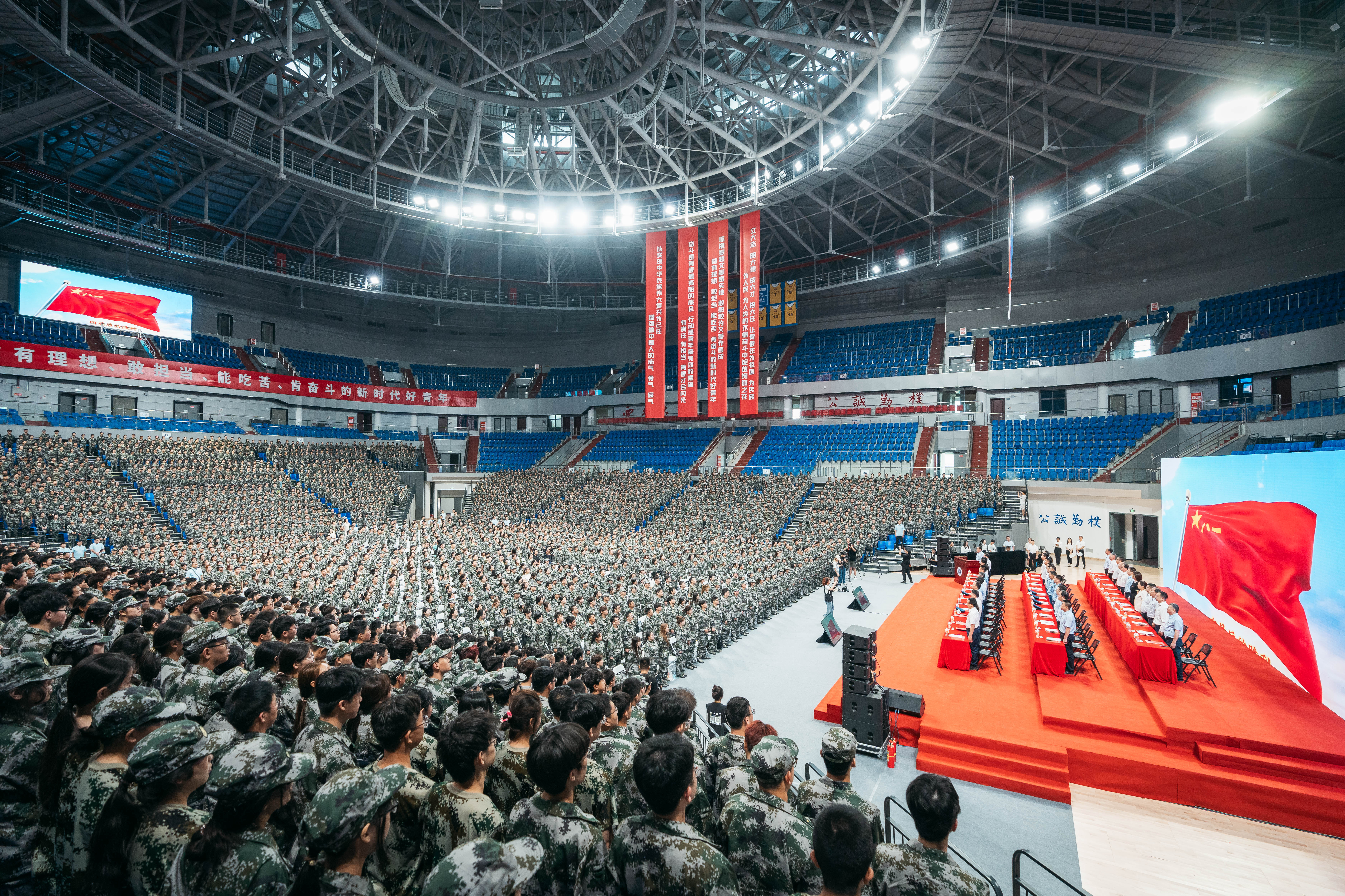 8月28日下午,乐鱼网页版页面登录2024级学生军训动员大会在长安校区体育馆举行。中国人民解放军空军工程大学信息与导航学院领导和承训教官,学校全体校领导、各院(系)党委书记、2024级军训全体参训干部、2024级全体本科新生参加大会。大会由校党委常委、副校长,军训旅副政委,李振海主持。