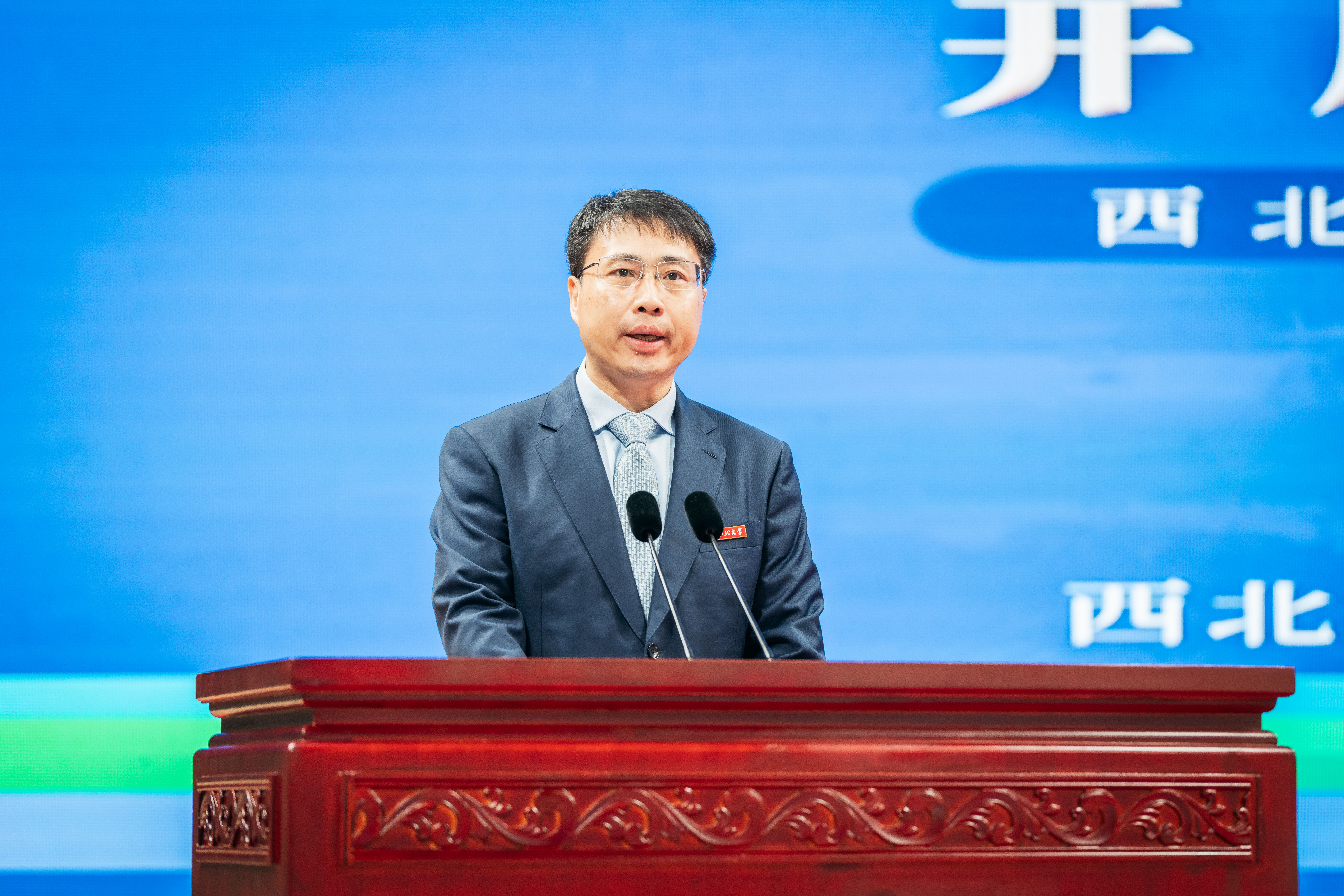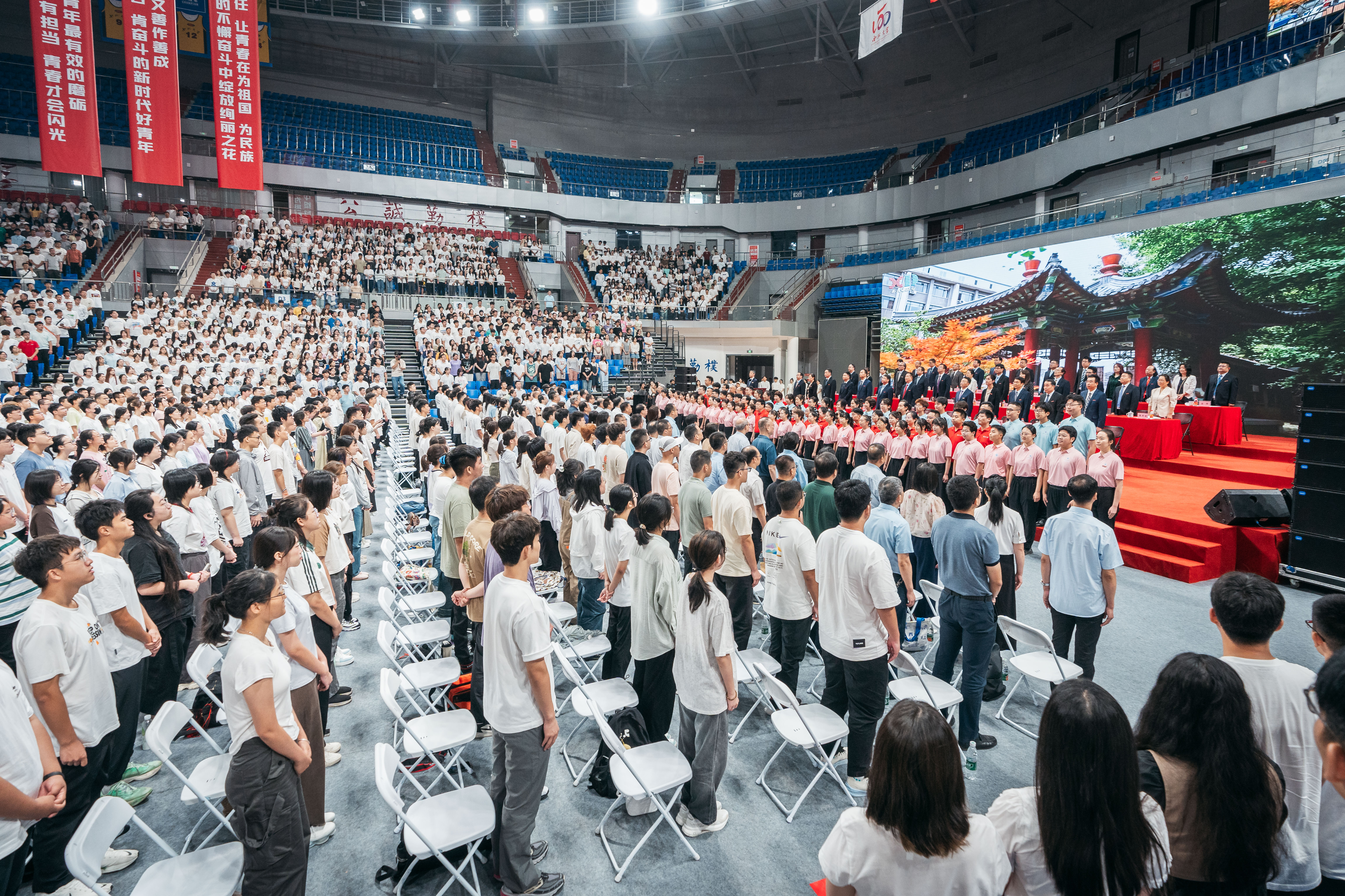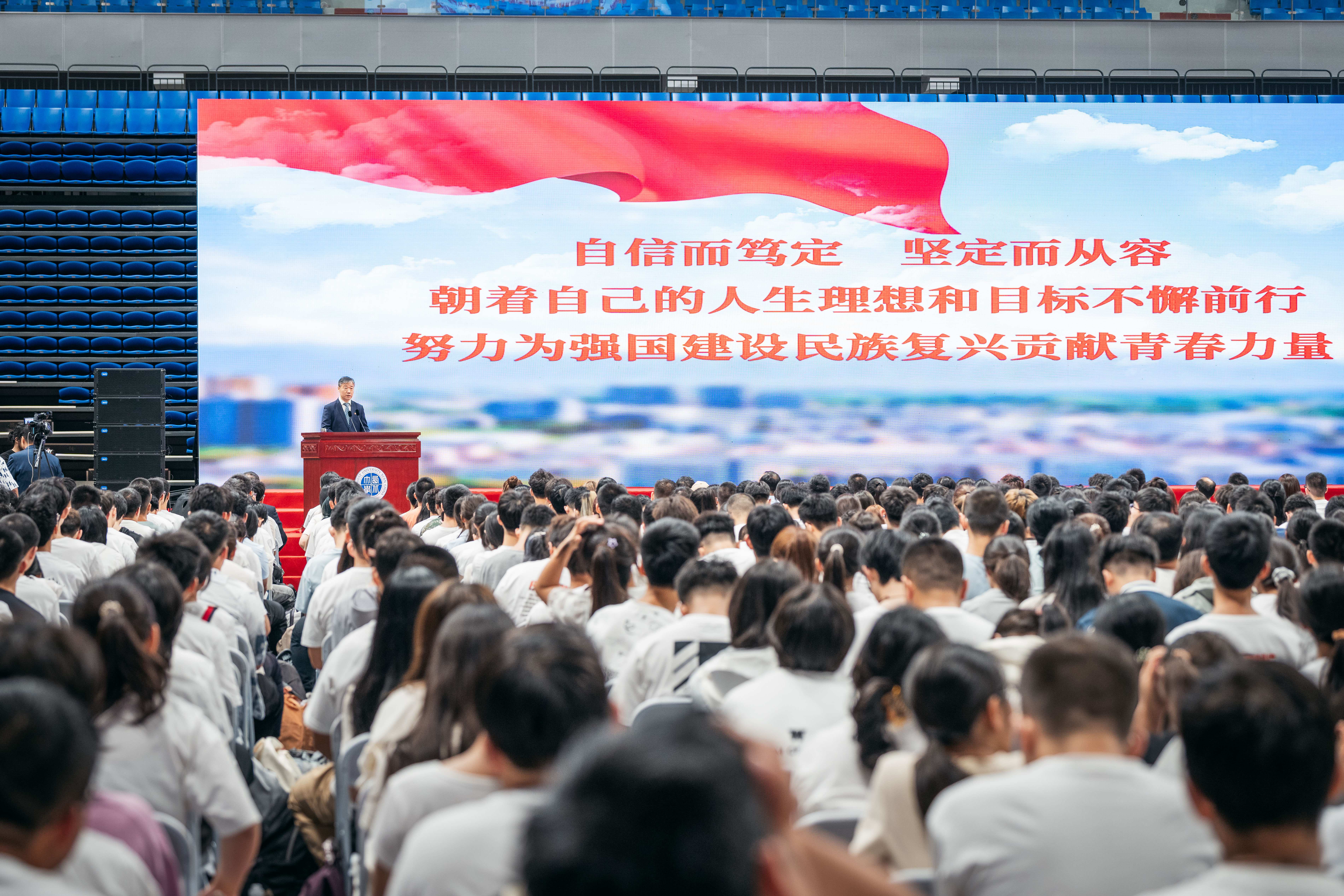 校党委副书记吕建荣在主持时要求,“开学第一课”是一次思想淬炼和精神洗礼,全体新生要认真体悟蕴含其中的思想内涵,以西大先辈和优秀师生、校友为榜样,把自身发展融入到党和人民事业之中,不负时代、不负韶华,在推进强国建设、民族复兴伟业中展现青春作为、贡献青春力量,奋力书写绚丽多彩的青春篇章。(图/ 马骞 钱舟)
