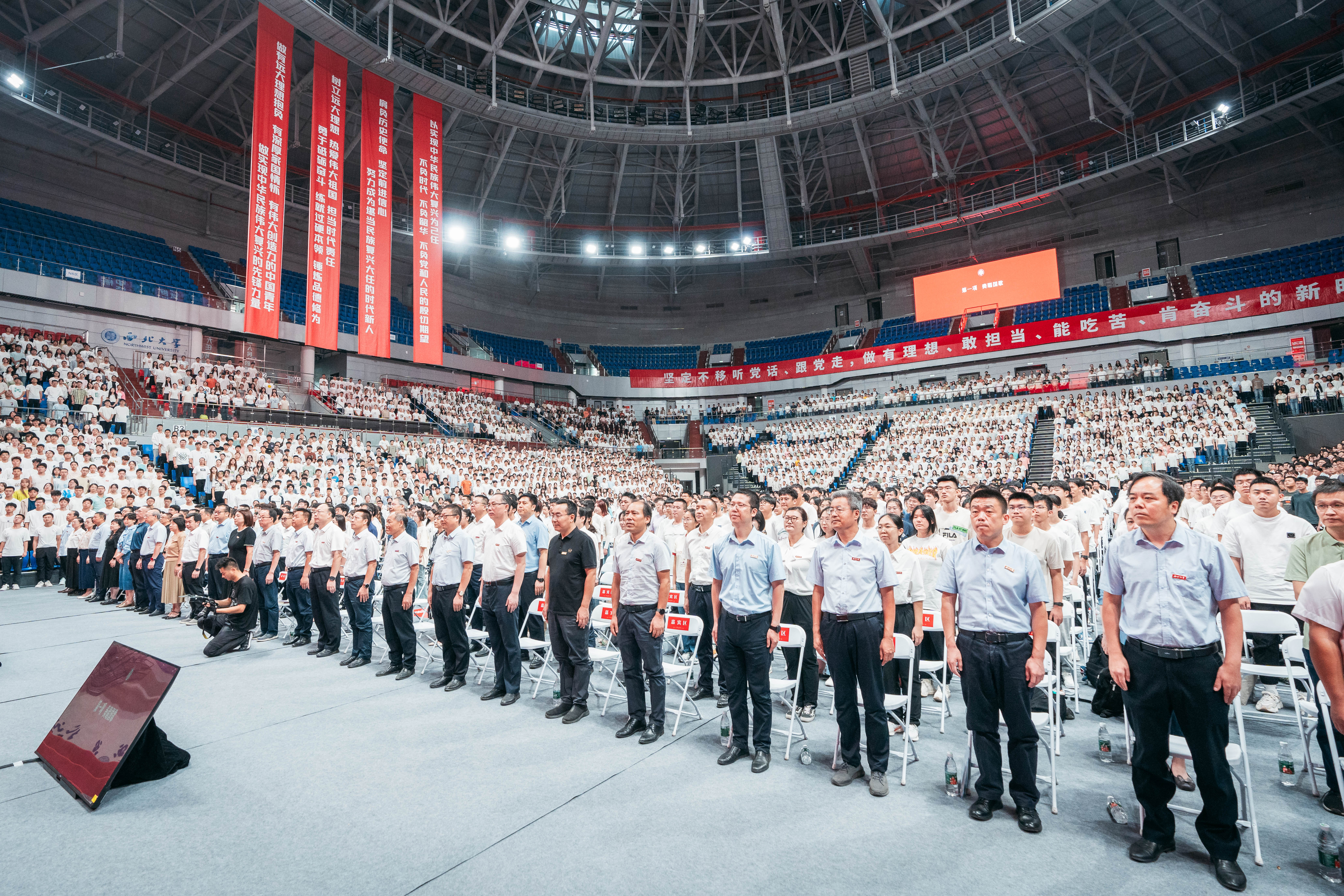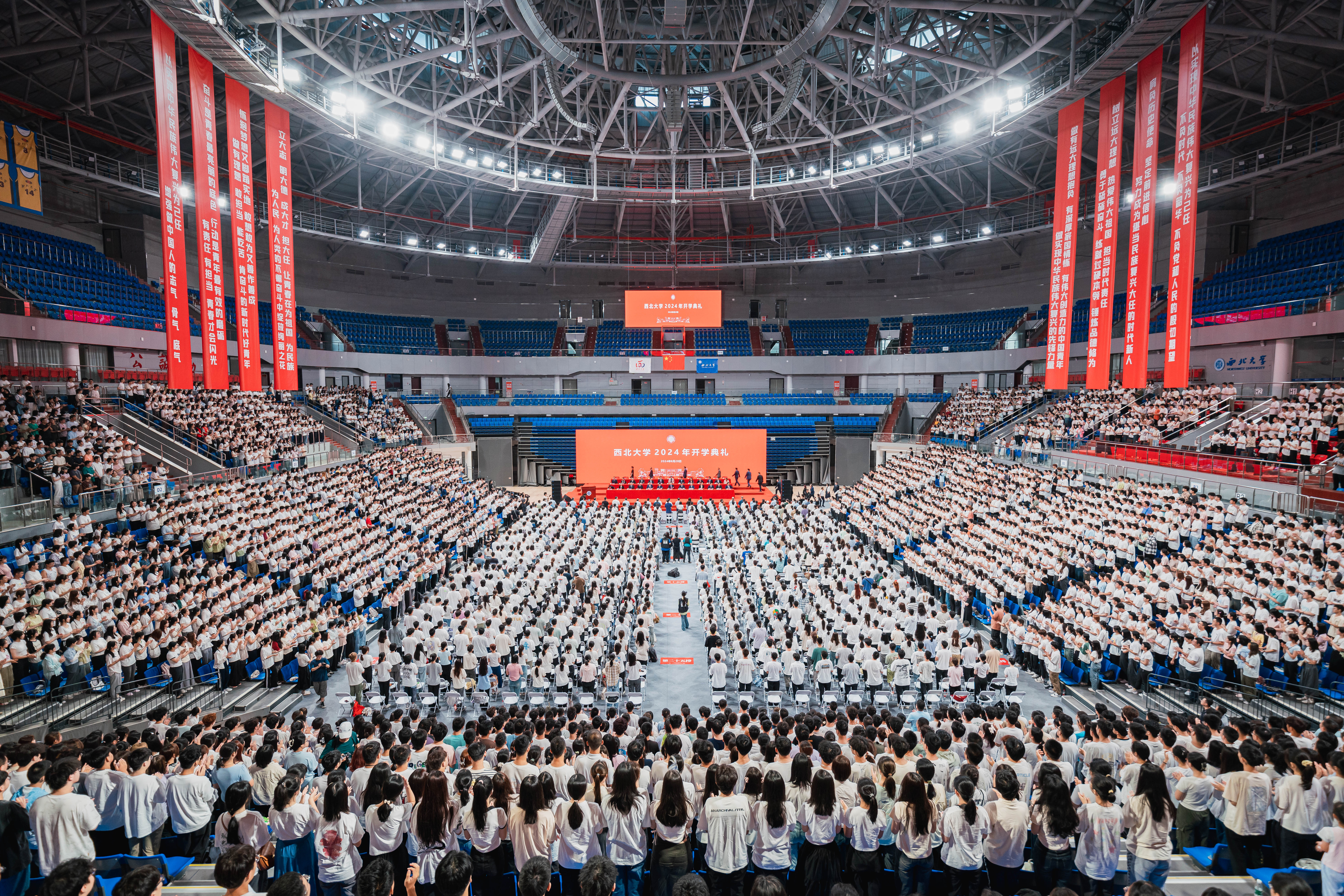 8月28日上午,乐鱼网页版页面登录2024级新生开学典礼在长安校区体育馆举行。全体校领导,中科院院士、地质学系舒德干教授,国家级教学名师、信息科学与技术学院耿国华教授,国家级教学成果奖一等奖获得者、文化遗产学院孙满利教授,校友代表、清华大学化学系教授、国家杰出青年科学基金获得者王训等出席开学典礼。8512名本科生、研究生、留学生新生和学生家长代表,机关、业务单位和各院系负责人、教师代表参加典礼。典礼由校党委书记蒋林主持。