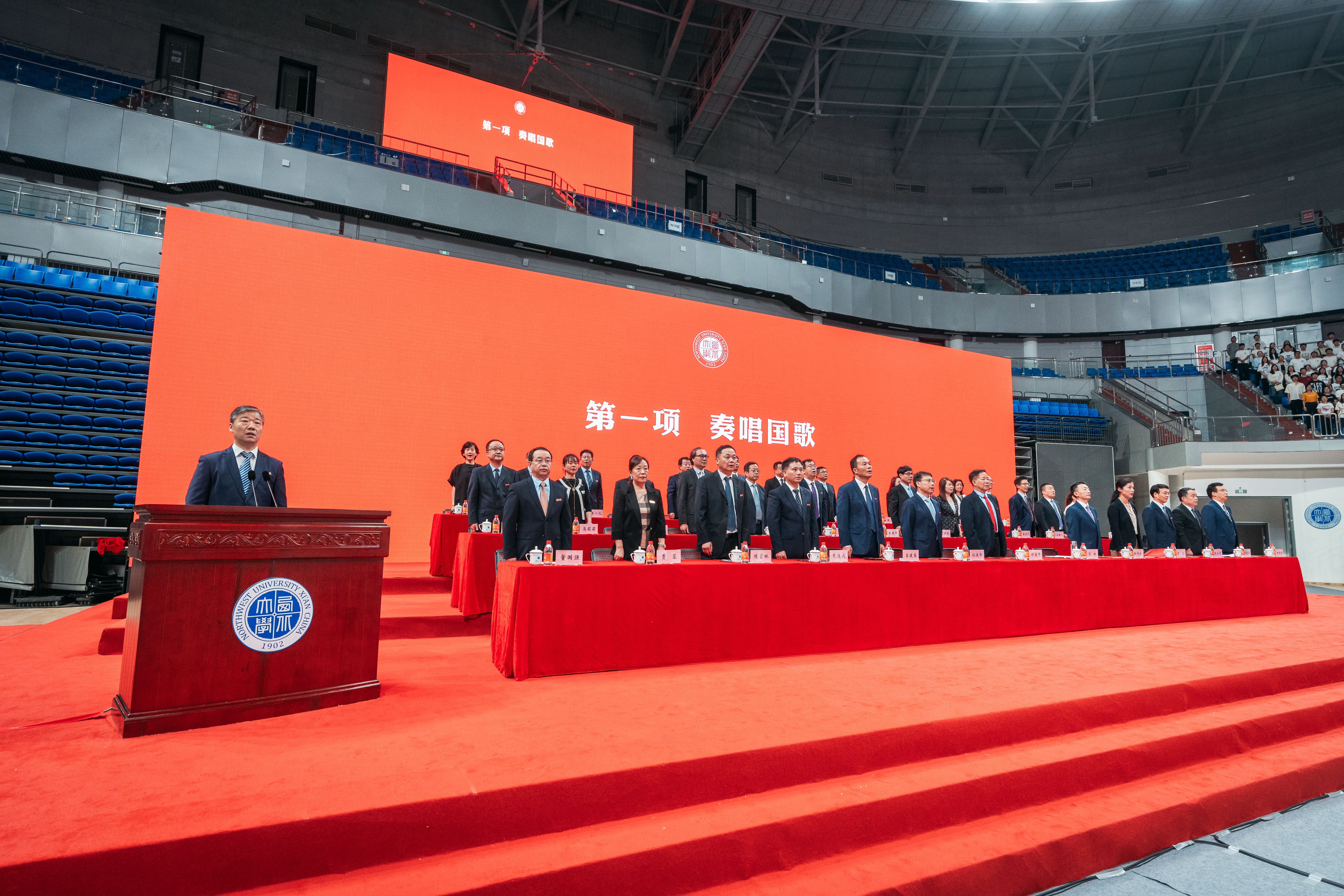 典礼在雄壮的国歌声中开启。