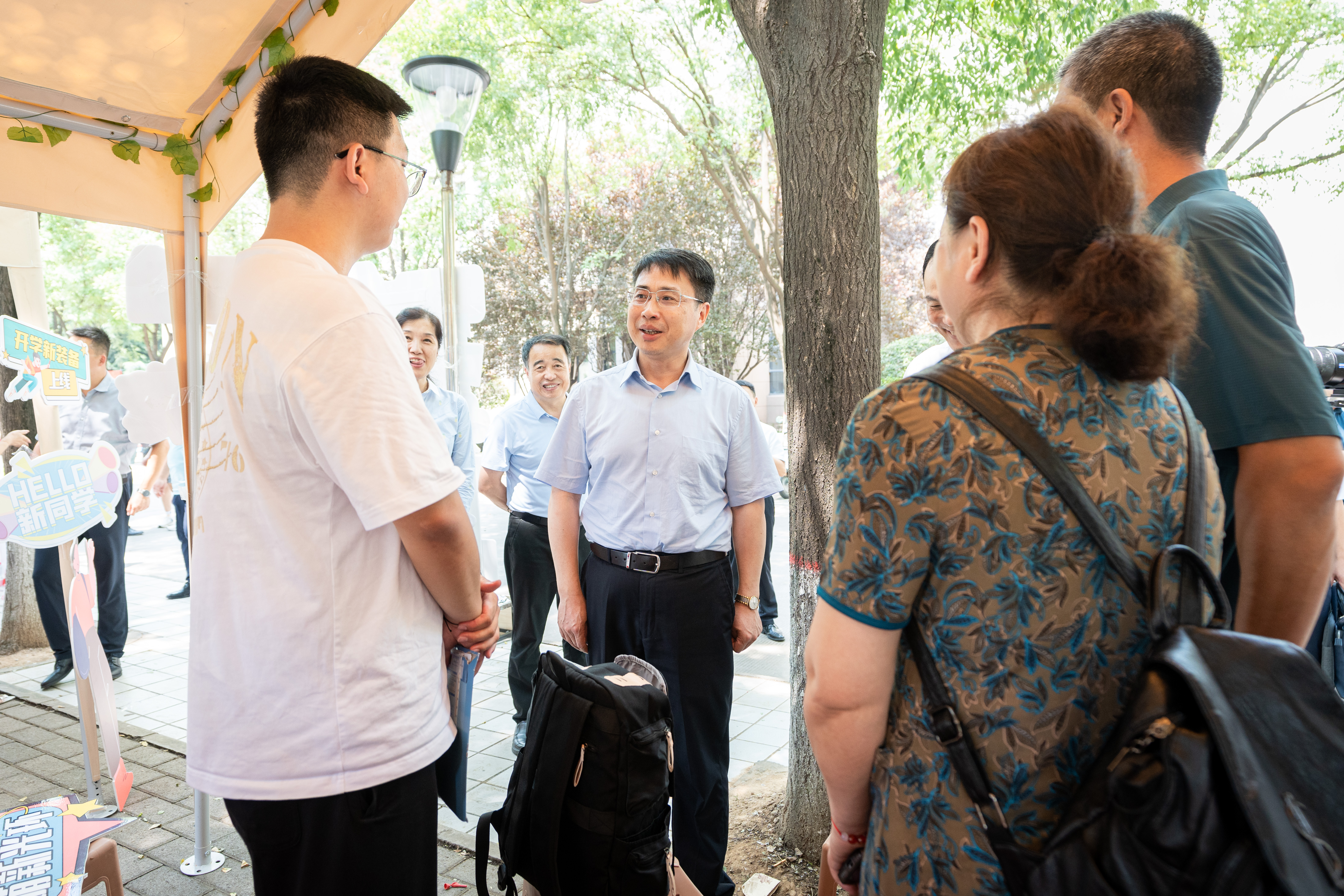 8月23日,校长孙庆伟,校党委副书记赵作纽、吕建荣、张清,校党委常委、副校长张远军、李振海,副校长曹蓉带队检查2024年迎新工作和秋季学期开学准备工作,相关部门负责人陪同检查。